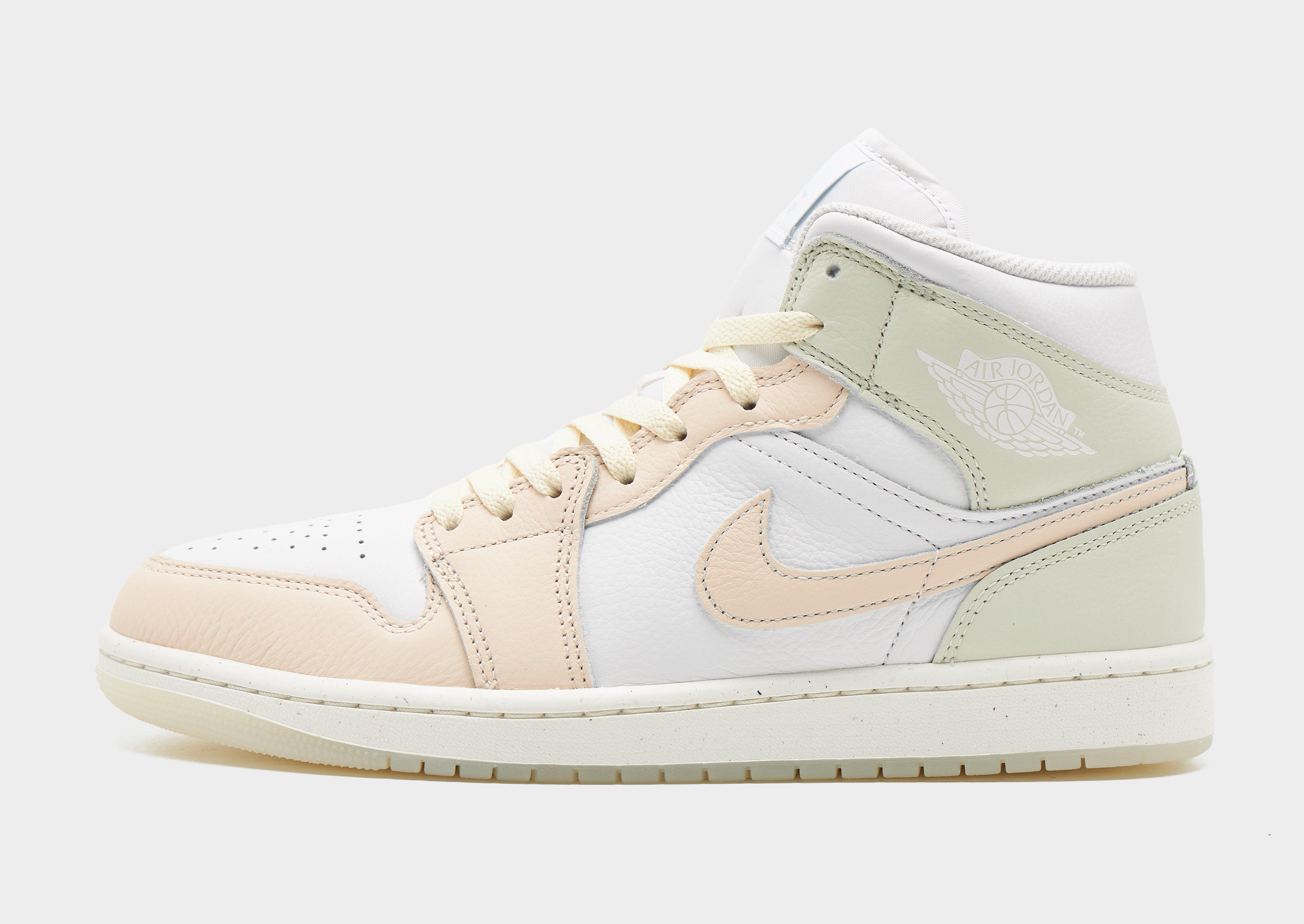 Keep your rotation iconic with the epitome of sneaker culture: the Air Jordan 1 Mid. Born from the collaboration between Nike and basketball legend Michael Jordan in 1985, the AJ1 changed the game forever, shattering conventions with bold colours and silhouettes. In a Sail colourway with Pink details, these mid-top shoes are crafted from a leather, synthetic leather and textile blend across the upper for support. Underfoot, the foam midsole combines with Nike Air cushioning for lightweight comfort, while the durable rubber outsole has pivot circles for retro-inspired traction. With a padded ankle collar and perforations on the toe, these kicks are finished off with the Swoosh and Air Wings logo to the sidewalls and the iconic Jumpman to the tongue. Decades later, the AJ1 remains an icon of style and athleticism, transcending generations with its timeless design and legendary status. Style Code: HJ6654-100