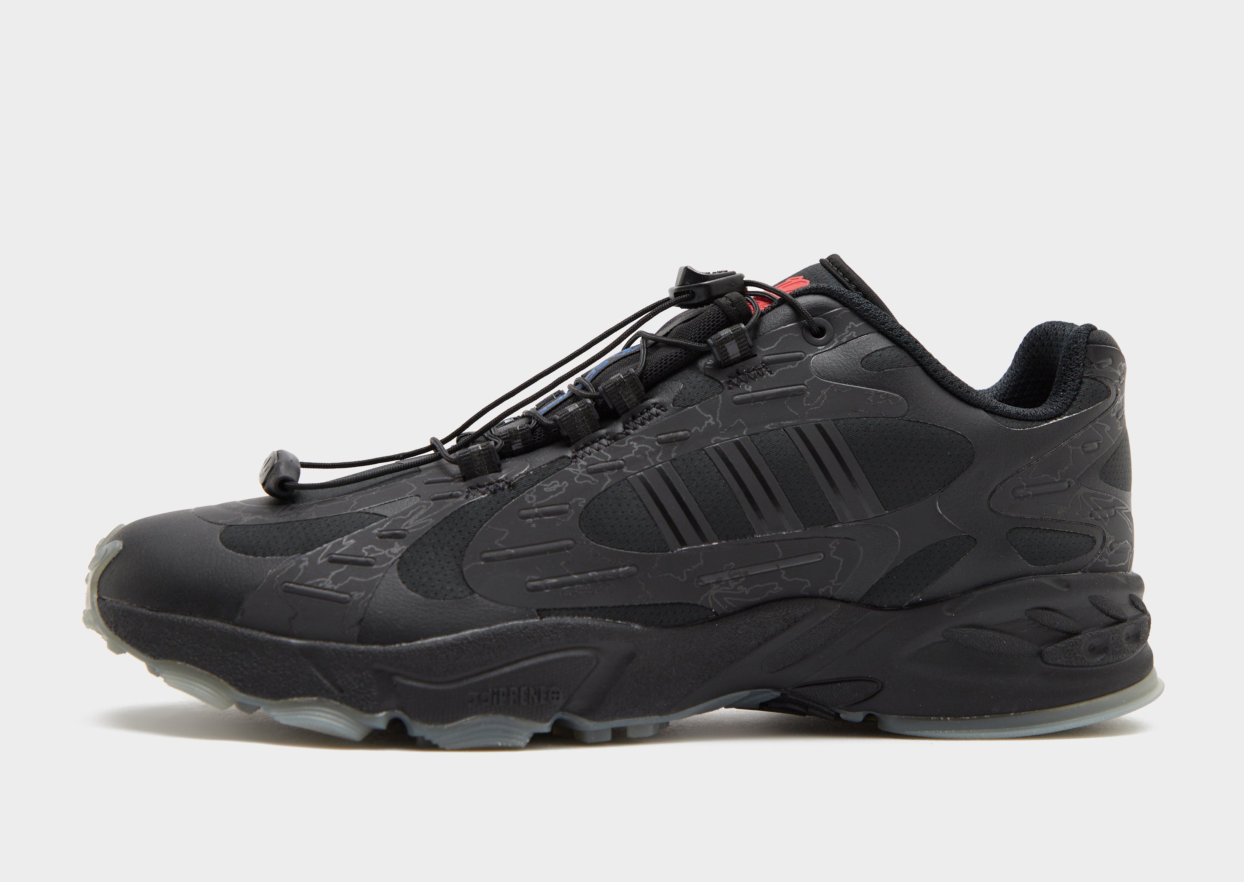 Bring an outdoor-inspired vibe to the streets in these men's Savage trainers by adidas x 100 Thieves. Fresh but functional, these Black trainers with Red accents have a breezy mesh upper with no-sew synthetic elements. They're adorned with 100 Thieves' signature reflective geo-camo detailing, while a speed lacing system locks you in, fast. With cushioning underfoot and a tough rubber tread to keep you gripped, they're signed off with iconic adidas x 100 Thieves branding. | JR5538