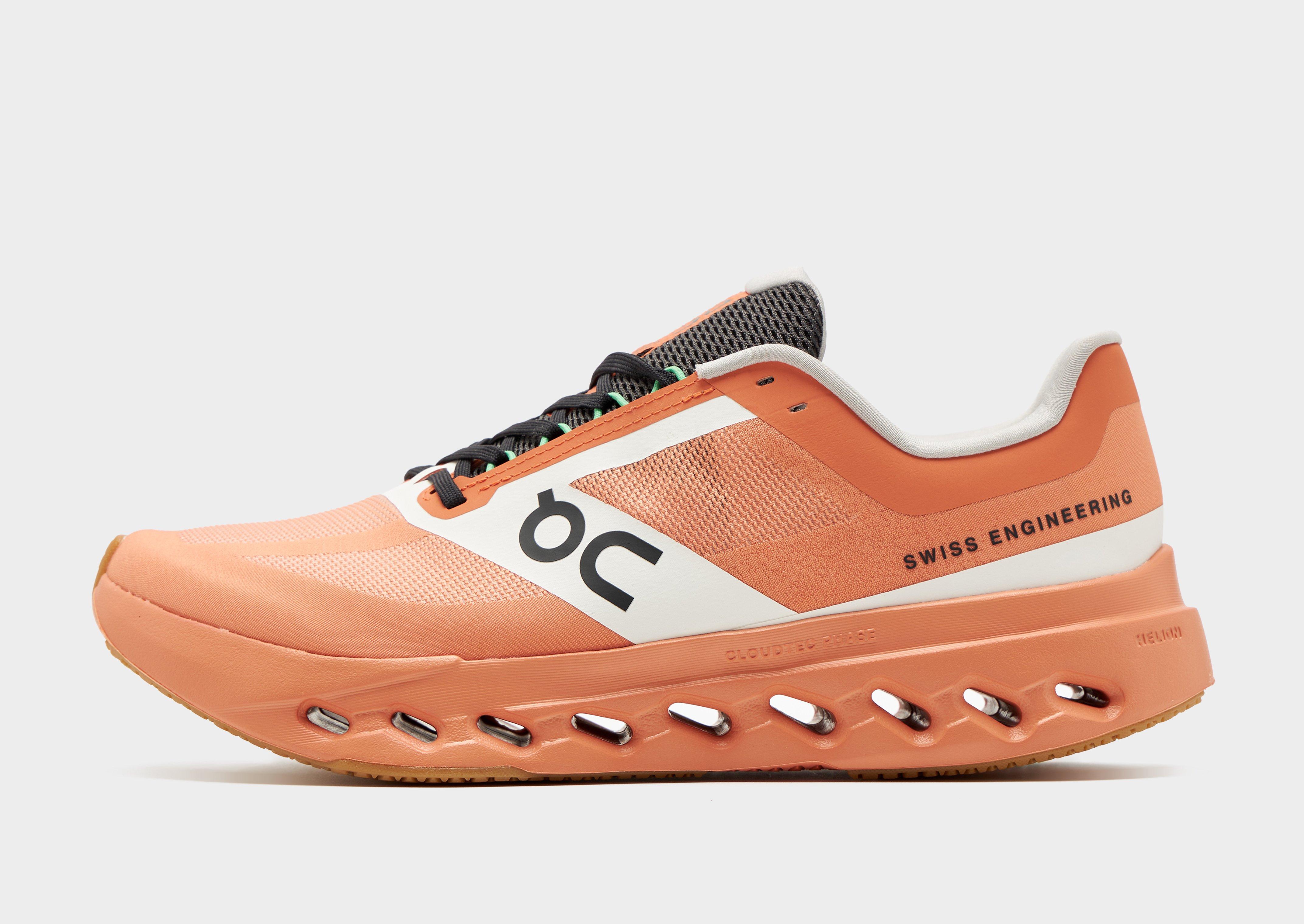 Lace up in Swiss-engineered runners with these men's Cloudsurfer Next shoes from On Running. In an Orange colourway with White details, these runners have a lightweight, breathable mesh upper with synthetic overlays to keep 'em cool. They feature a lace fastening and a padded collar for a secure fit, while the Helion superfoam midsole and CloudTec Phase cushioning offers a responsive ride as you rack up the miles. Sat on a grippy rubber outsole for total traction, they're signed off with signature On Running branding throughout. Style Code: 3MF10323004