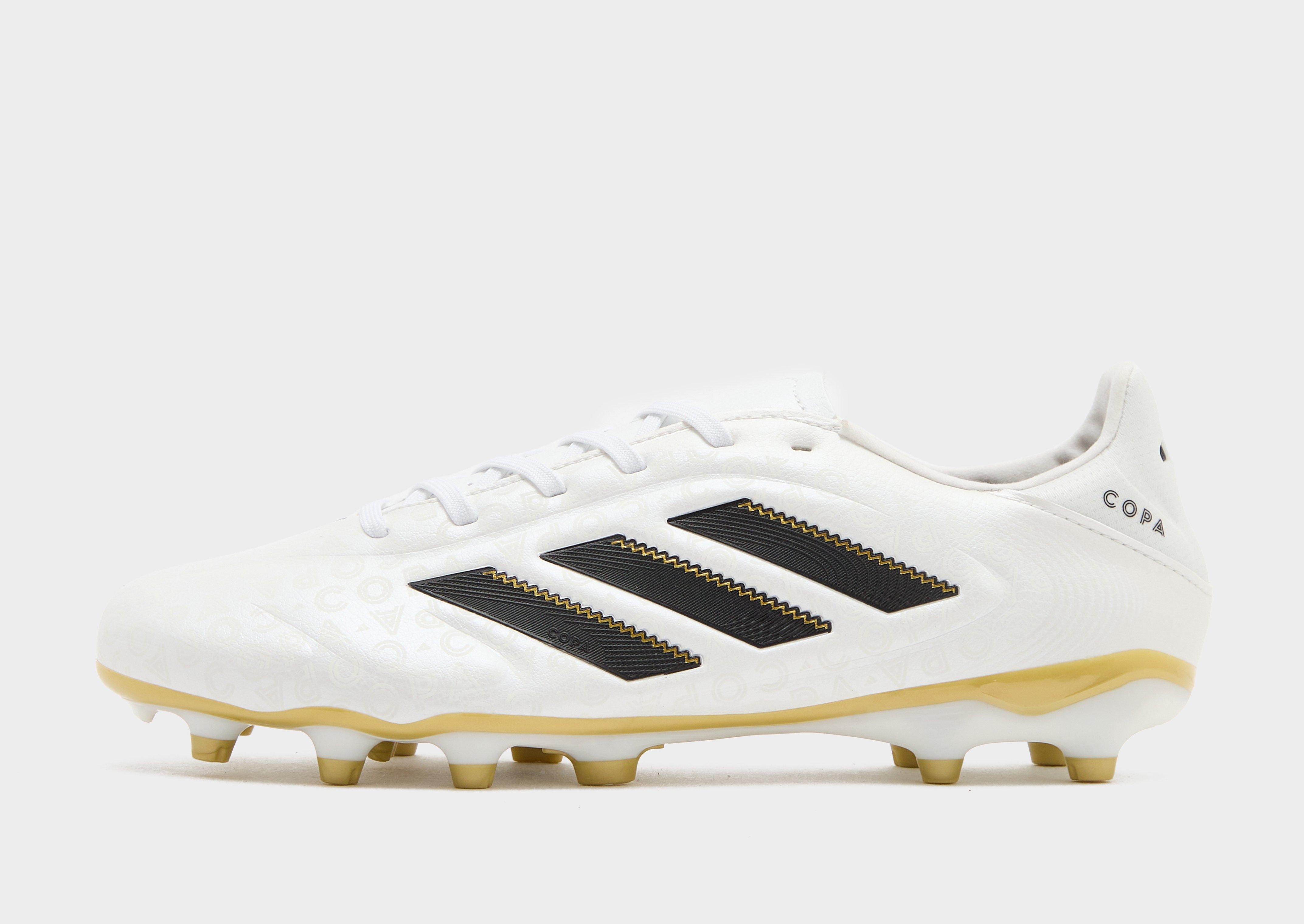 Find the back of the net in these men's Copa Pure 3 League football boots from adidas. In a Zero Metallic colourway with Core Black and Gold Metallic accents, these boots have a Fusionfeel textured synthetic upper for grippy ball control. They feature a lace fastening to keep you locked in, with a perforated, padded tongue for extra support. Underfoot, they have a Comfortplate outsole that's designed for total traction on firm ground surfaces. Finished up with signature adidas and Copa branding throughout. | JH6296
