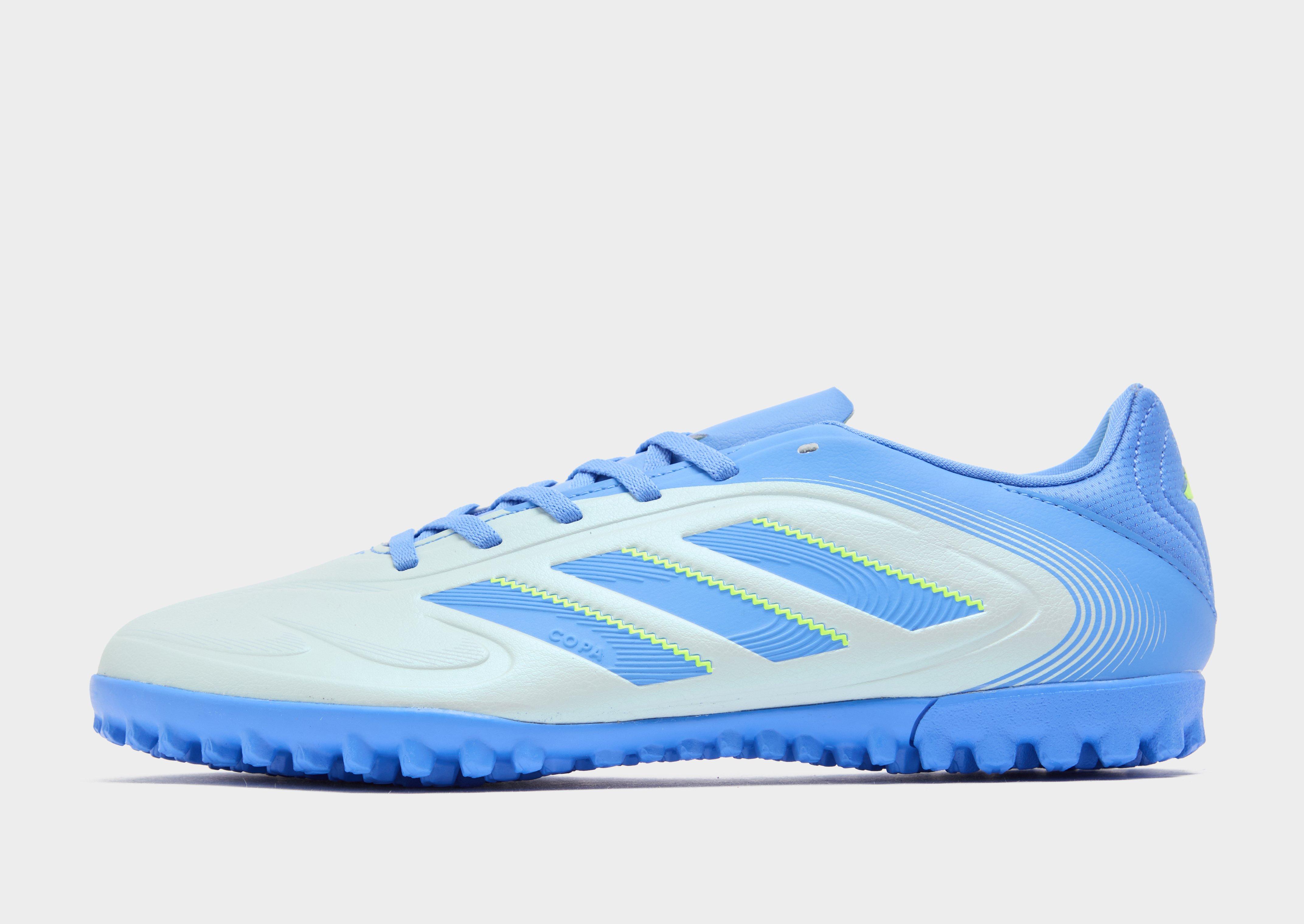 Perfect your touch when you play in these men's Copa Pure 3 Club TF football trainers from adidas. In a Halo Blue and Blue Fusion colourway, these club trainers have a leather-like grain texture to the soft synthetic upper for cushioned control. The perforated tongue adds airflow to your foot, while the textile lining and cushioned insole offer a comfy fit. With a rubber lug outsole for grip on indoor and artificial turf pitches, these boots are finished with the 3-Stripes and Performance logo. | IE1170
