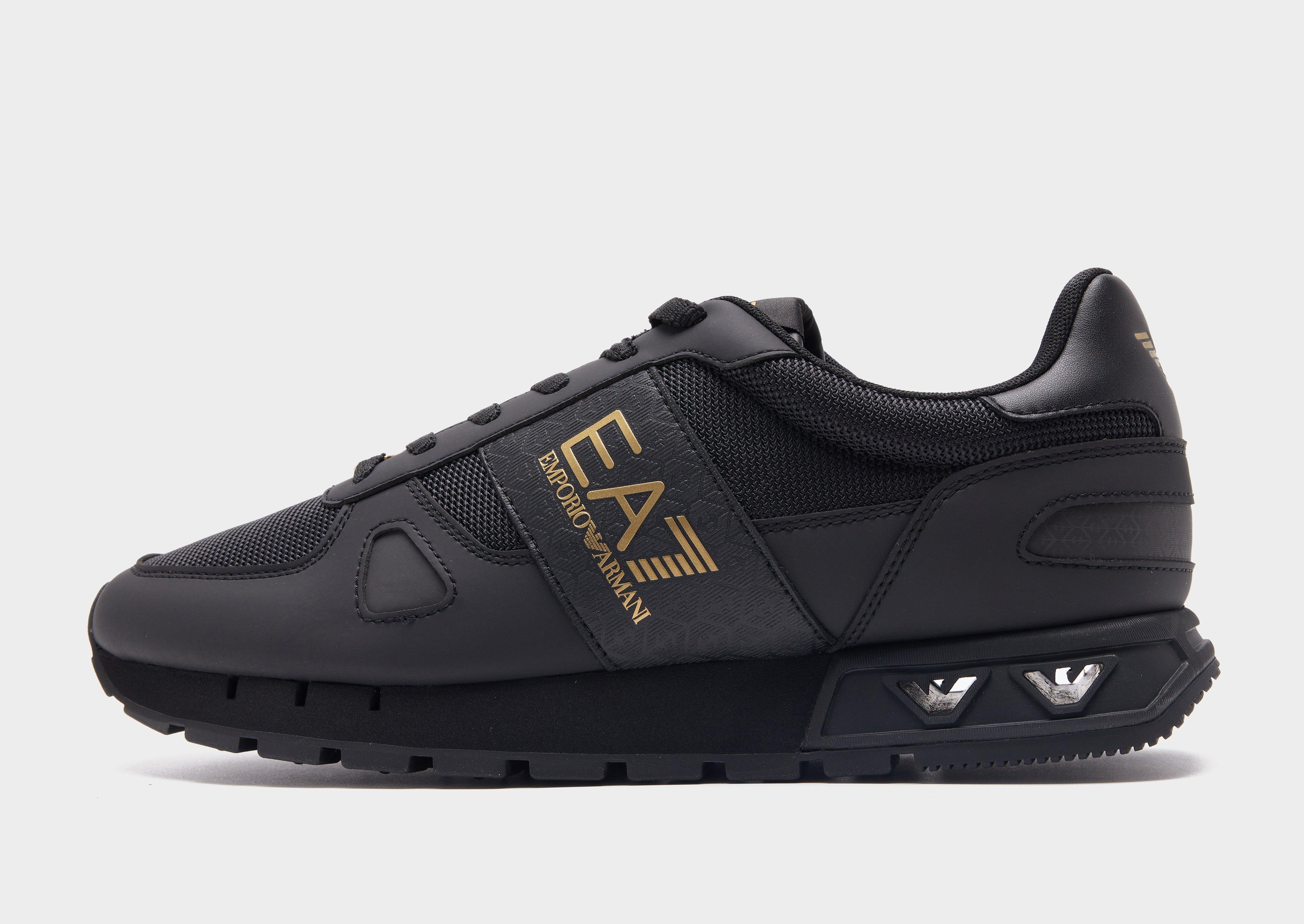 Add some premium style to your rotation with these men's B&W Legacy trainers from Emporio Armani EA7. In a black colourway, these JD-exclusive sneaks are made with a mesh upper with synthetic overlays for a breathable wear that keeps your feet supported. With tonal lacing for a locked-in fit, these creps are sat on a white midsole for responsive cushioning in every step. With a grippy outsole and a heel pull tab for an easy fit, these creps are finished with gold-tone EA7 branding to the sidewalls and midsole.