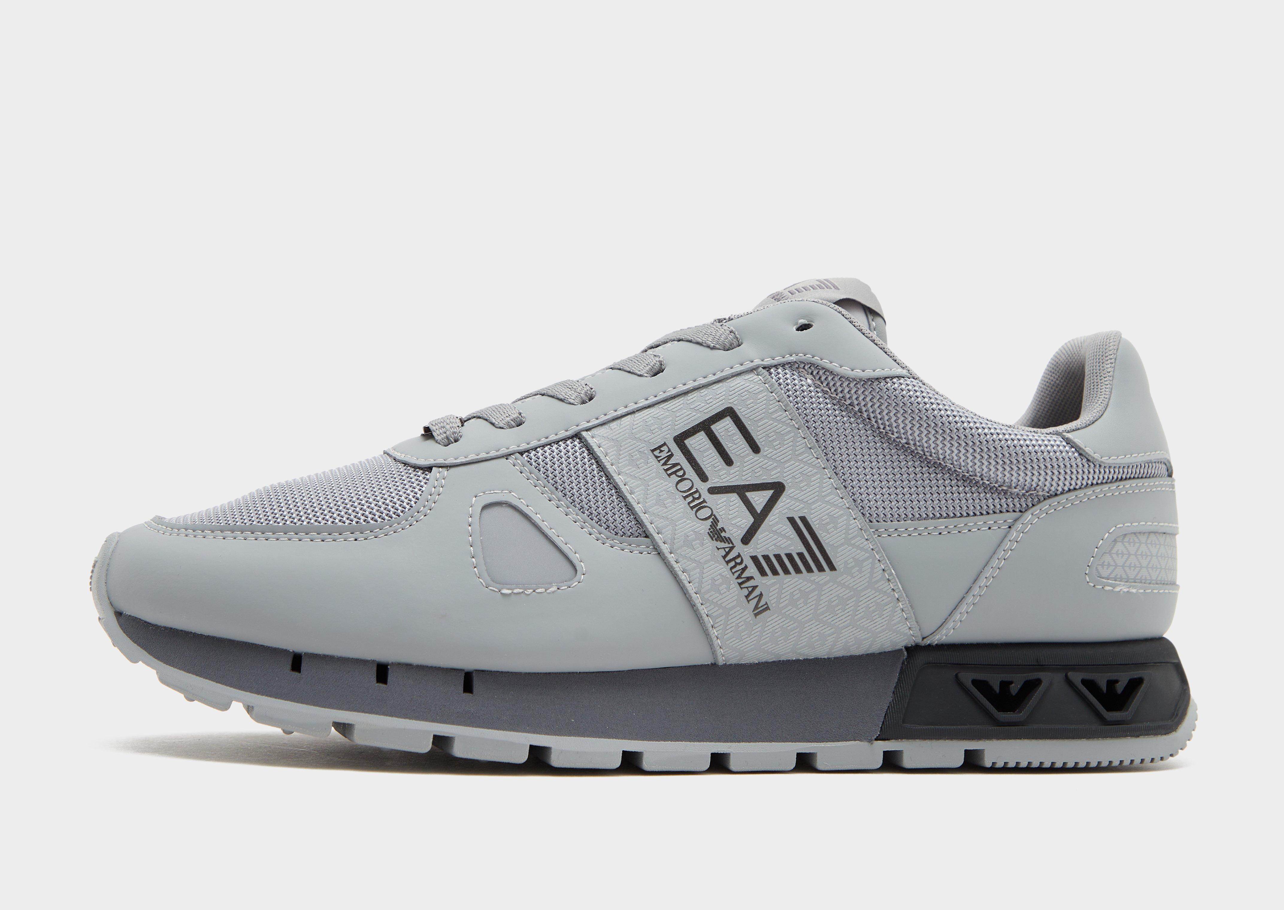 Premium sports heritage, made for the streets. Step out in these men's B&W Laces Retro sneakers from EA7 Emporio Armani. In Grey, these trainers have a mix of mesh, synthetic leather and cow leather to the upper. They're sat above a fresh running sole, with the Eagle windows to the heel, while the chunky rubber outsole keeps you gripped. Finished with a padded ankle collar and signature EA7 branding to the sidewalls and tongue.
