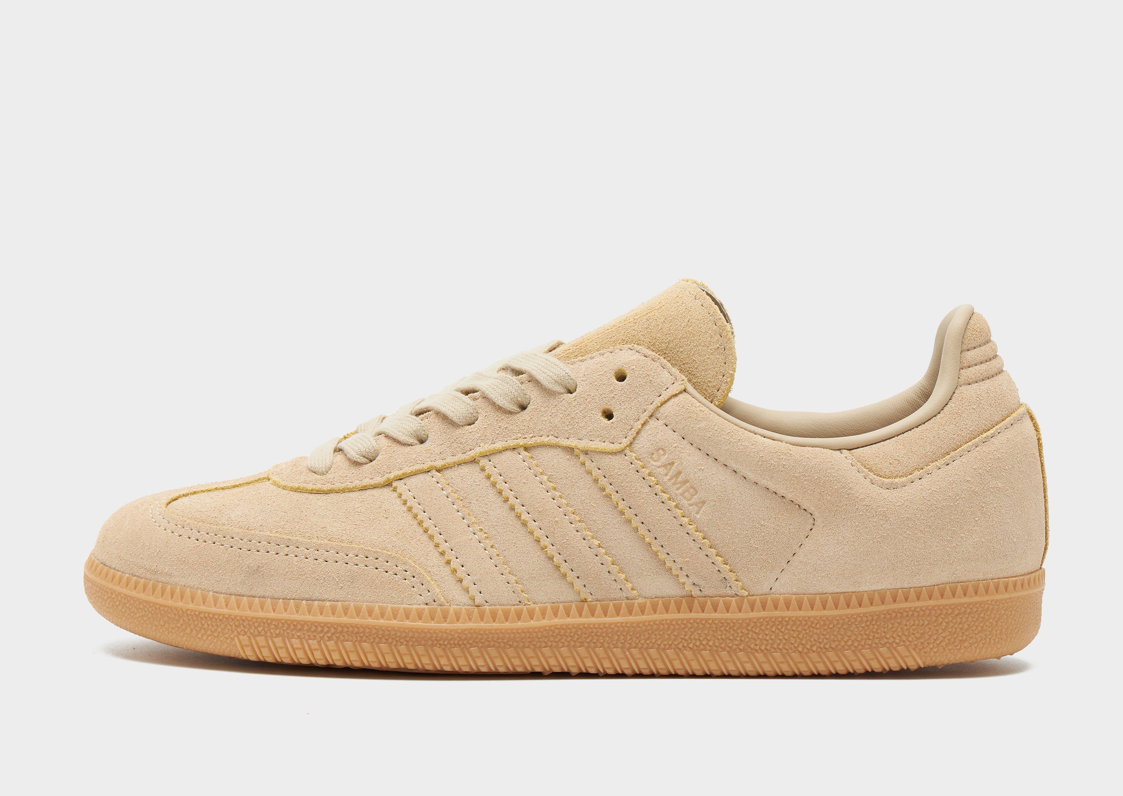 Add a streetwear icon to your footwear rotation with these men's Samba OG shoes from adidas Originals. Taking cues from the original football-inspired Samba design first introduced in the 1950s, these iconic terrace sneakers let you imagine you're walking in those vintage footsteps. Built with a Tan leather upper, they feature a suede toe guard and are sat upon a responsive gum midsole. With tonal laces and signature adi 3-stripes to the side in White, they're signed off with 'Samba' wording to the side, and iconic Trefoil branding to the tongue. Style Code: JI3210