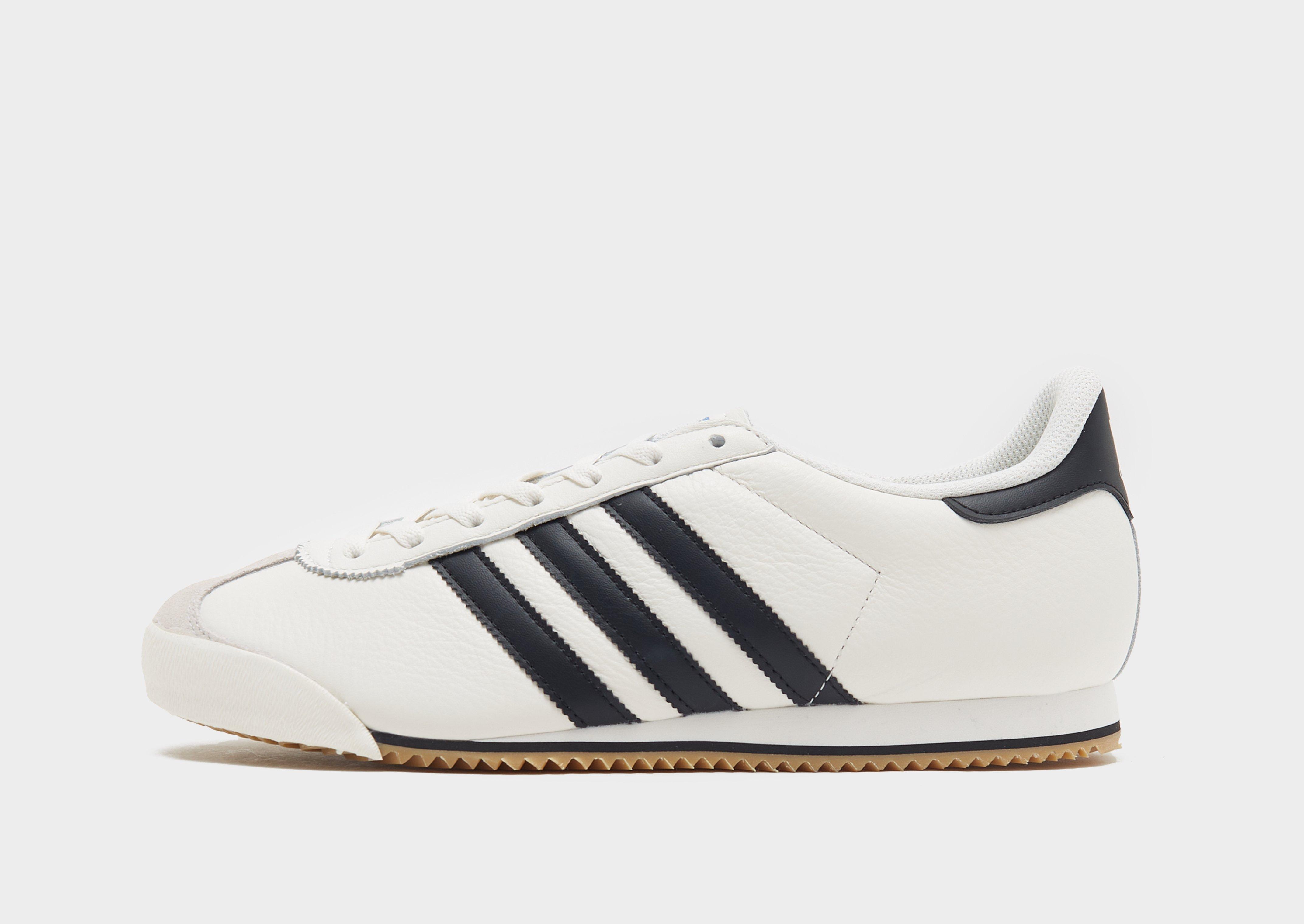 Made for the '74 World Cup final, bring some history to your stride with these men's Kick sneakers from adidas Originals. In a White and Black colourway, these sneaks are cut from smooth, durable leather in the upper for a lasting wear. They feature a lace fastening to keep you locked in, with a padded collar for support. Underfoot, they sit on a soft EVA midsole and have a grippy rubber outsole for traction. Finished up with the iconic 3-Stripes and and Trefoil branding to the tongue. | IG8950