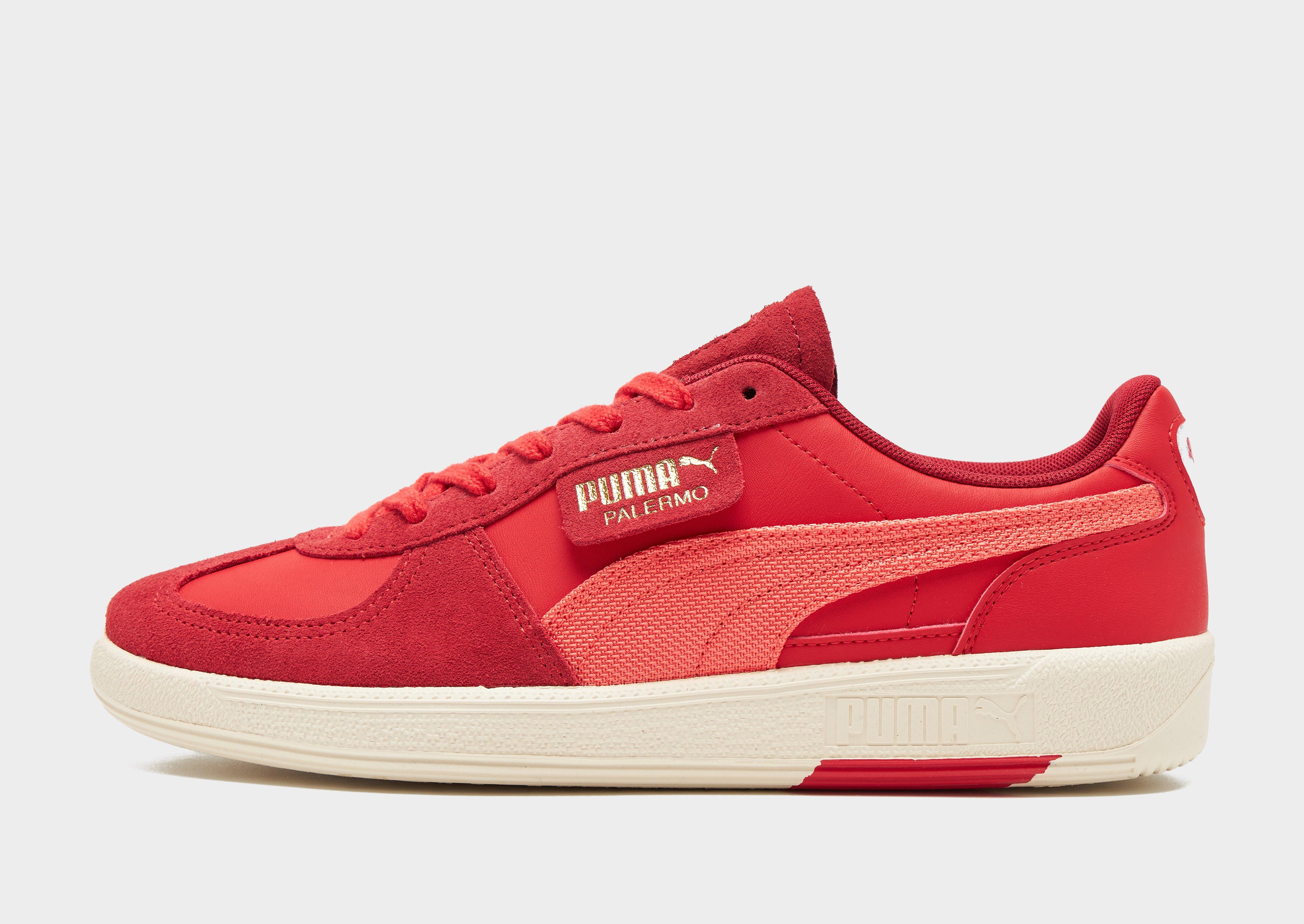 Bring a terrace vibe to your step with these men's special edition Scuderia Ferrari x Palermo shoes from PUMA. Coming in a Red colourway with Peach details, these sneakers are cut from premium suede in the upper for a lasting wear. They feature a lace fastening with a low-cut padded ankle collar for a locked-in feel, and sit on a cushioned midsole for a smooth ride. With a rubber outsole for grip, they're finished with the signature PUMA Formstrip to the sidewalls, and Ferrari badge to the tongue. Style Code: 30871702