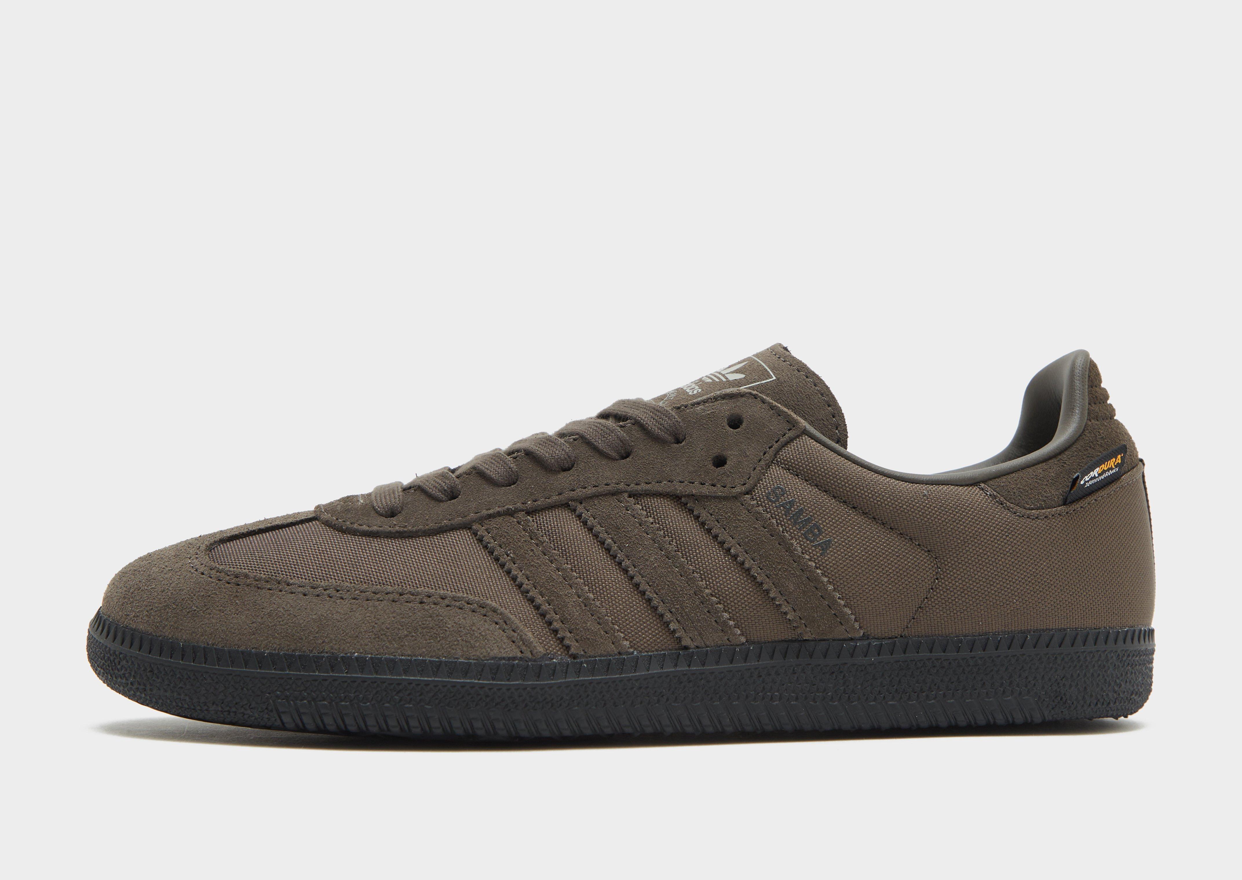 Rep the 3-Stripes on the streets with these men's Samba OG Cordura trainers from adidas Originals. In a Shadow Olive and Core Black colourway, these sneaks have a Cordura upper with suede overlays for a premium feel. They feature a lace fastening to keep you locked in, while the rubber outsole provides total traction on the streets. Finishing up, they're signed off with the Trefoil logo to the tongue, with the signature 3-Stripes and Samba branding to the sidewalls. | JI3213