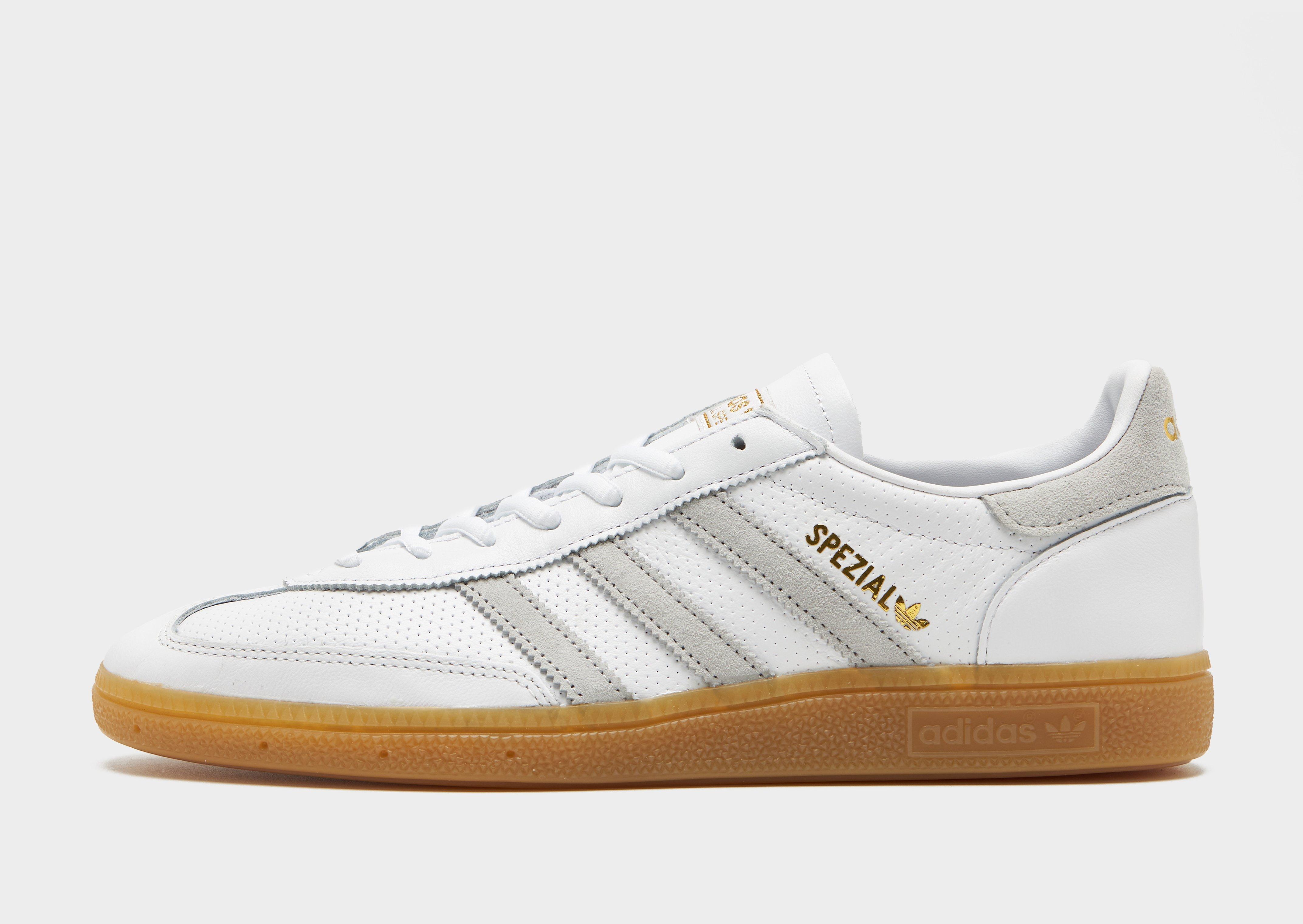 From the terrace to the street, rep a classic look with these men's Handball Spezial shoes from adidas Originals. First introduced in 1979 for the speedy handball courts of Germany, the simple yet stylish silhouette quickly made it a go-to, iconic trainer. Landing in a White colourway with Grey details, these JD-exclusive sneakers have an upper made with suede and nylon for durable wear. They feature a lace fastening with a padded ankle collar for a locked-in fit and sit on a lightweight midsole. With a gum rubber outsole for total traction, they're signed off with signature Adi 3-Stripes to the sidewalls. Style Code: JR0595