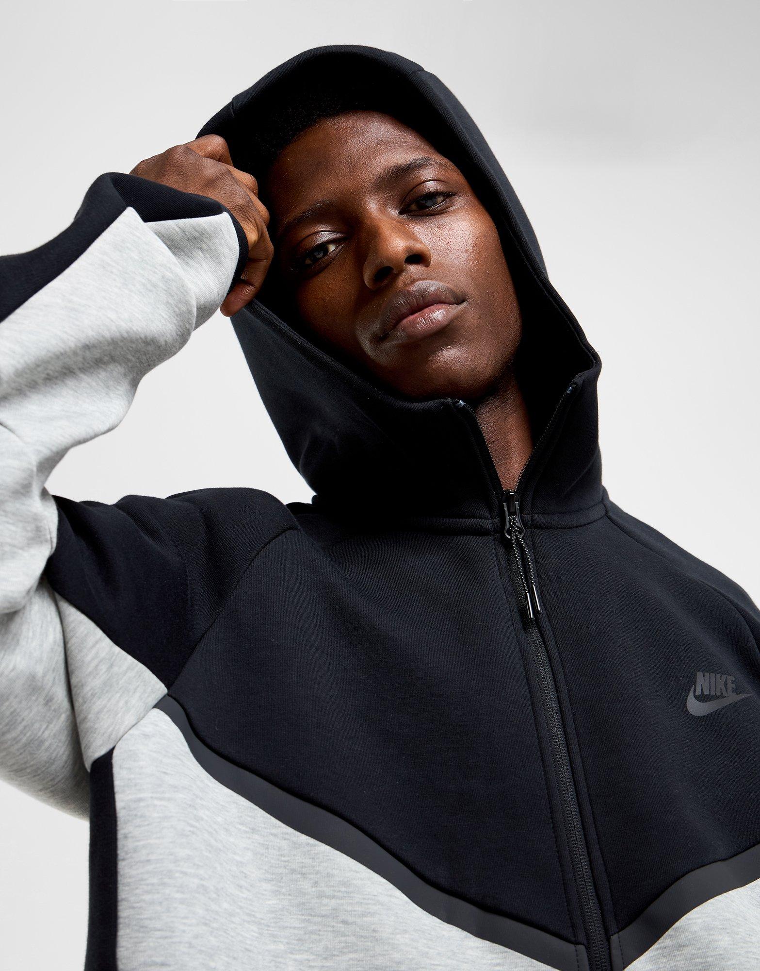 Layer up in a classic Swoosh style with this men's Tech Fleece Full Zip Hoodie from Nike. Coming in a Grey and Black colourway, this regular-fit hoodie is made with Nike's lightweight yet warming Tech Fleece fabric for lasting comfort. It features a two-way, full-zip fastening with a fixed hood to amp up the coverage, with stretch-bound cuffs to secure the fit. It has front pockets and a zip pocket on the sleeve for storage, and is finished with signature transparent taping and the iconic Nike logo to the chest.