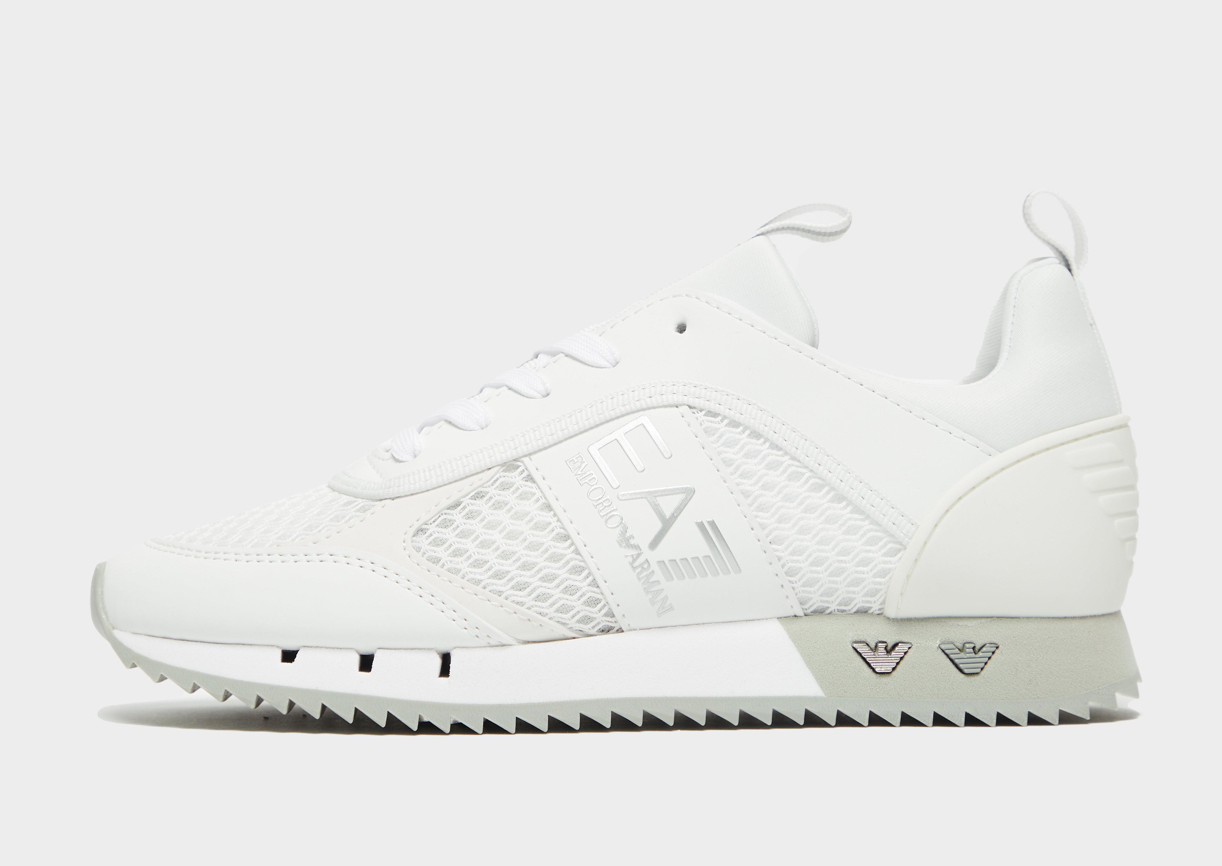 Lace up with these women's B&W Mesh Run trainers from Emporio Armani EA7. Exclusive to JD, these sneakers have a breathable mesh upper with synthetic leather overlays for extra support. They come in a white colourway, and feature a tonal lace up fastening and a midsole for lightweight cushioning. With a grippy outsole and a heel pull tab for easy on and off, these trainers are finished with signature EA7 branding to the sidewalls and midsole.