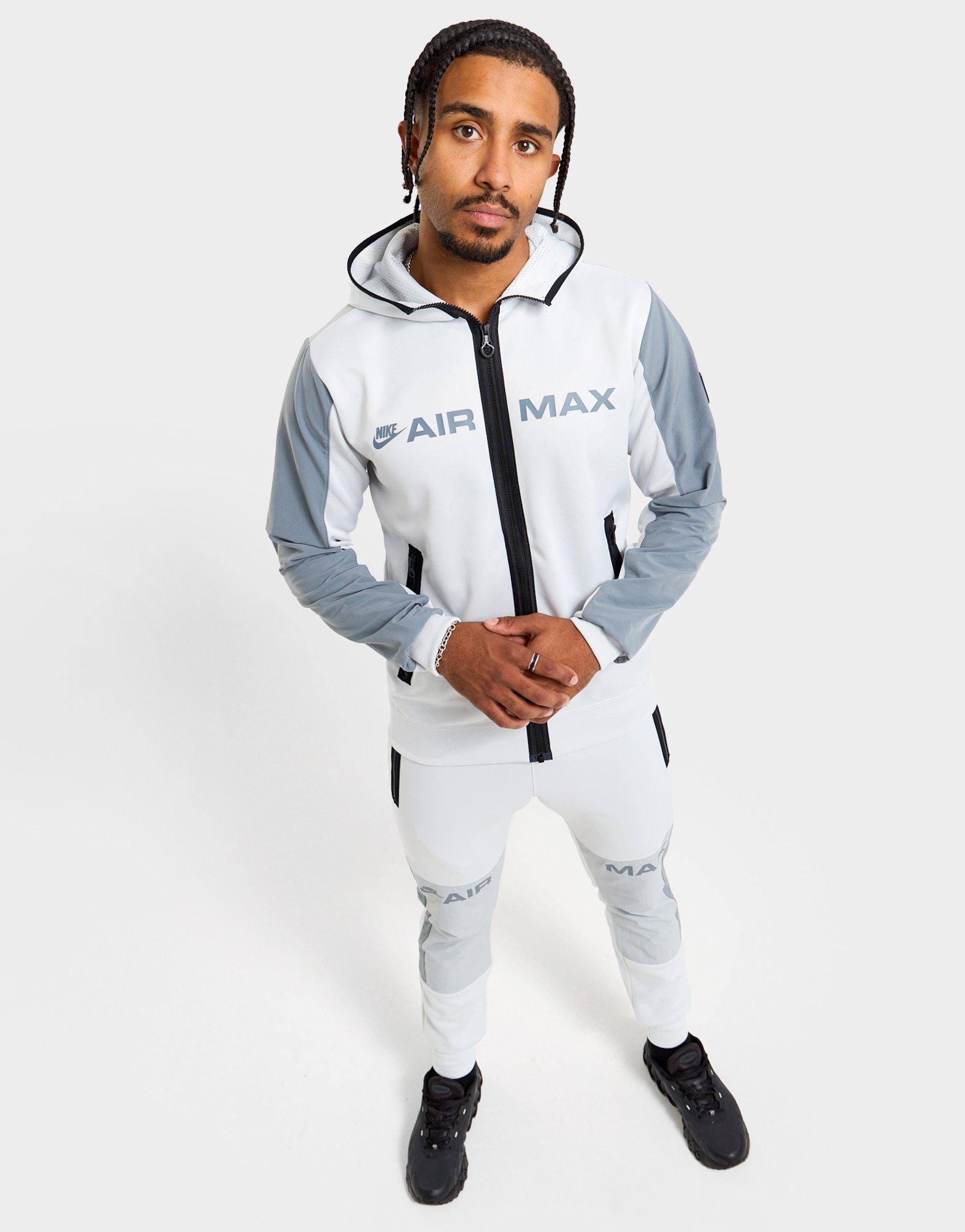 Upgrade your street-ready looks with this men's Air Max Polyknit Full Zip Hoodie from Nike. In a Grey colourway, this standard-fit hoodie is made with smooth, lightweight polyester fabric for lasting comfort. It features a full-length zipper with a high-cut collar and a fixed hood to amp up the coverage. It has stretchy ribbed trims to secure the fit, and zip pockets up front for easy storage. Finished with signature Nike Air Max branding. Style Code: HQ4899-025