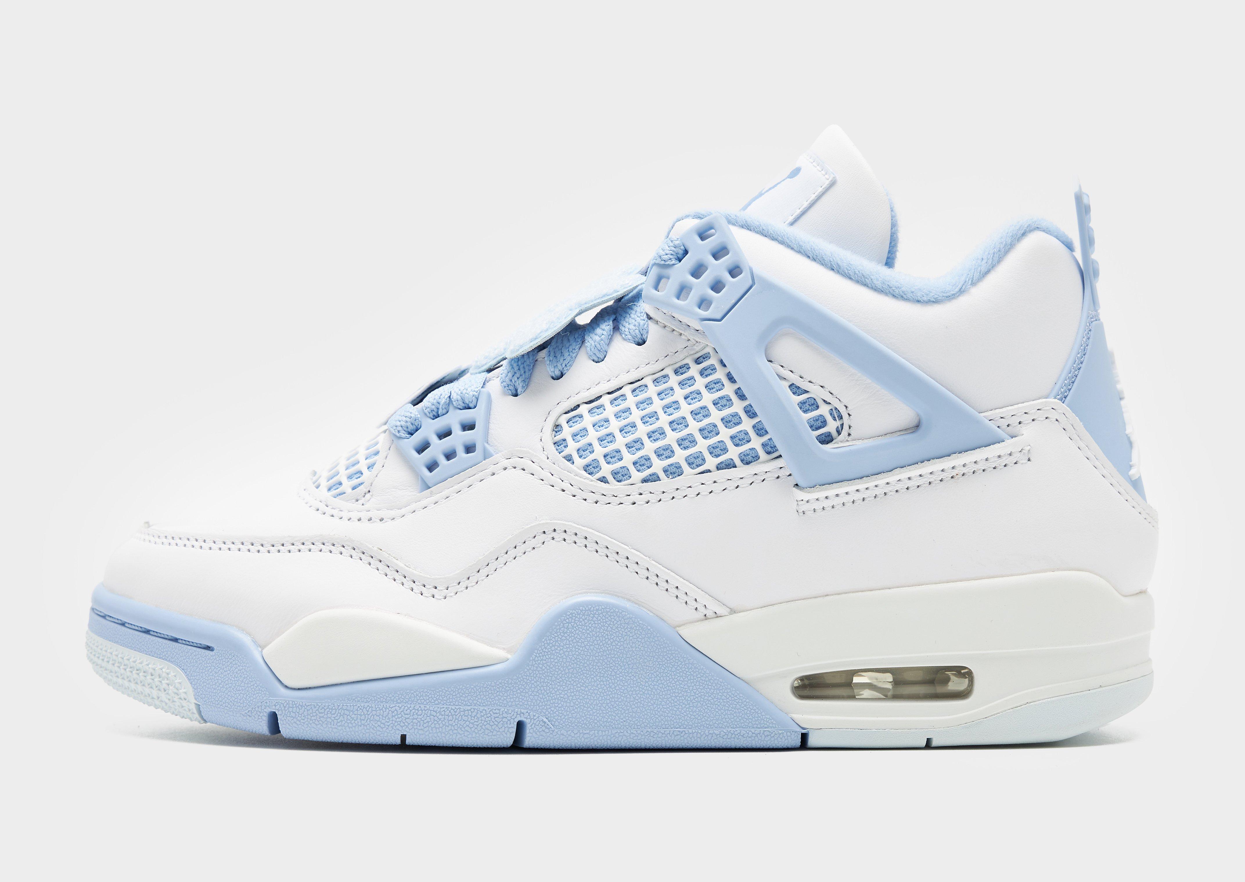 Level up your sneaker rotation with the iconic Air Jordan 4 'Forget Me Not'. With its distinctive silhouette and bold colourway with Blue details, this shoe has become a symbol of sneaker culture and streetwear fashion. Landing in a White colourway with Blue details, these women's sneakers have a durable canvas upper for a clean and classic look. They feature a lace fastening with a padded ankle collar for a snug, supportive feel. Underfoot is a soft foam midsole with a visible Air-Sole unit to the heel for cushioned comfort with every step. With a paint-splatter pattern to the rubber outsole for a statement style and traction, they're finished up with Jordan branding to the tongue. Style Code: HV0823-100