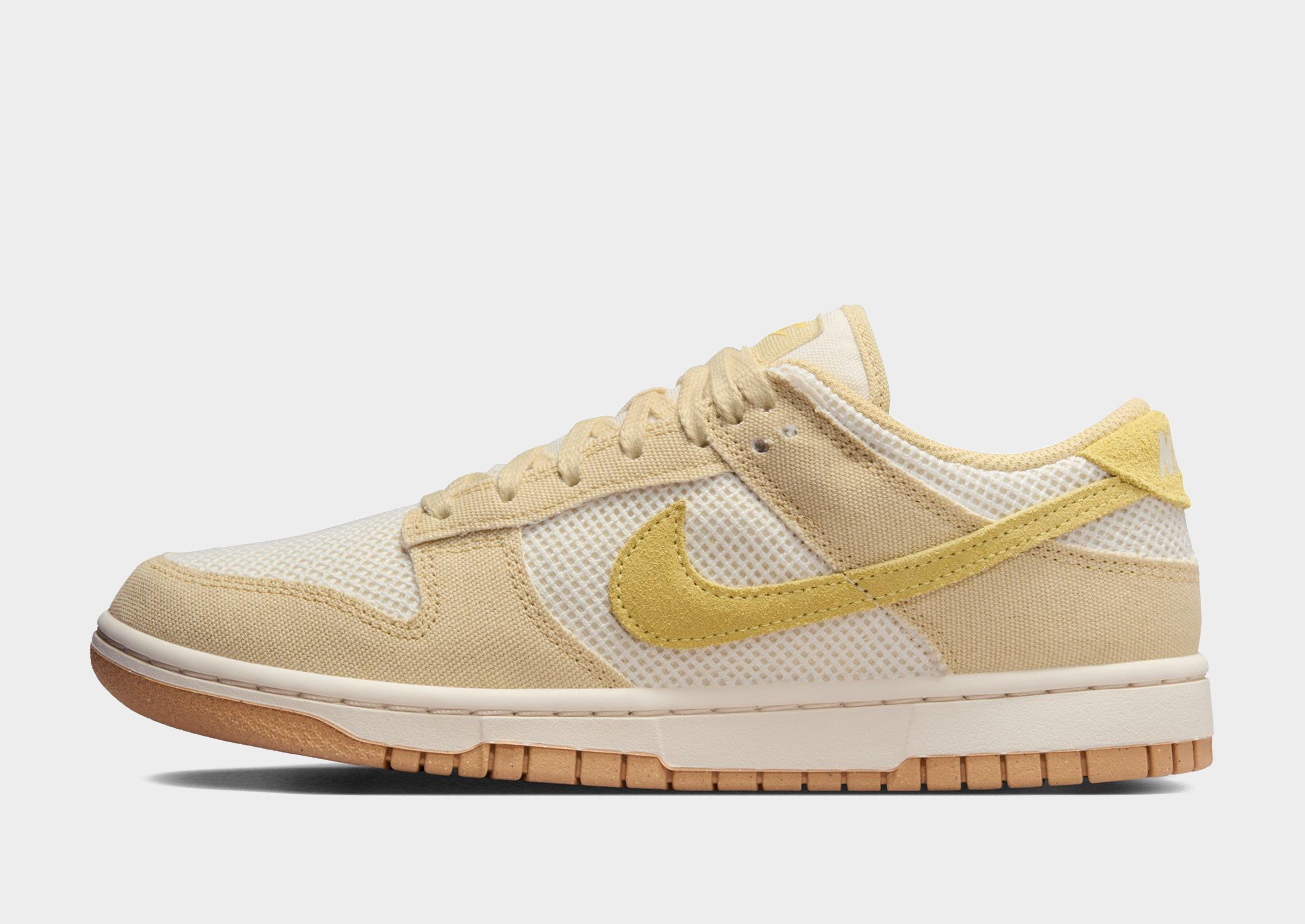 Inspired by b-ball style, these women's Dunk Low shoes from Nike are back from '85. These low-profile sneakers have a premium leather and synthetic upper keeping the OG design lines. They come in a Gold colourway with Yellow details, and feature a tonal lace-up fastening for a locked in fit. With breathable perforations to the toe box, these shoes are sat on a soft foam midsole for lightweight cushioning and maximum comfort. Finished with a grippy rubber tread for traction on the courts, signature Nike branding and the iconic Swoosh logo to the sidewalls. Style Code: HJ5864-700