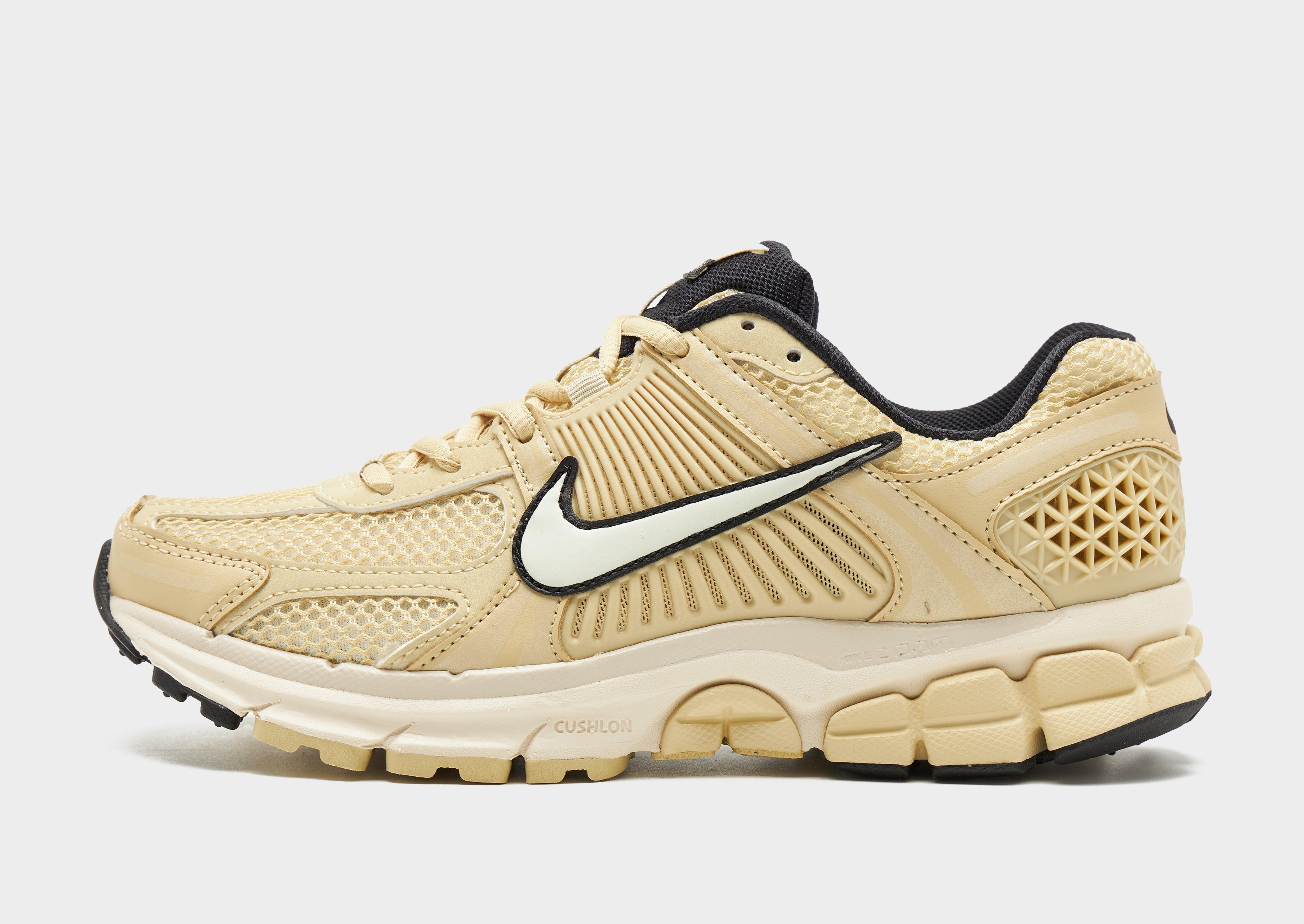 Retro running hits all-new heights with these women's Zoom Vomero 5 shoes from Nike. Landing in a Gold colourway with Cream details, this modern take on early '00s sneakers have a breathable mesh upper with TecTuff and utilitarian overlays for a durable and structured fit. Equipped with extra padding at the collar and tongue for comfort, they're sat above Zoom Air cushioning in the foam midsole for a super responsive, lightweight ride. Finished off with a solid rubber outsole and signature Swoosh logos. Style Code: FJ2028-700