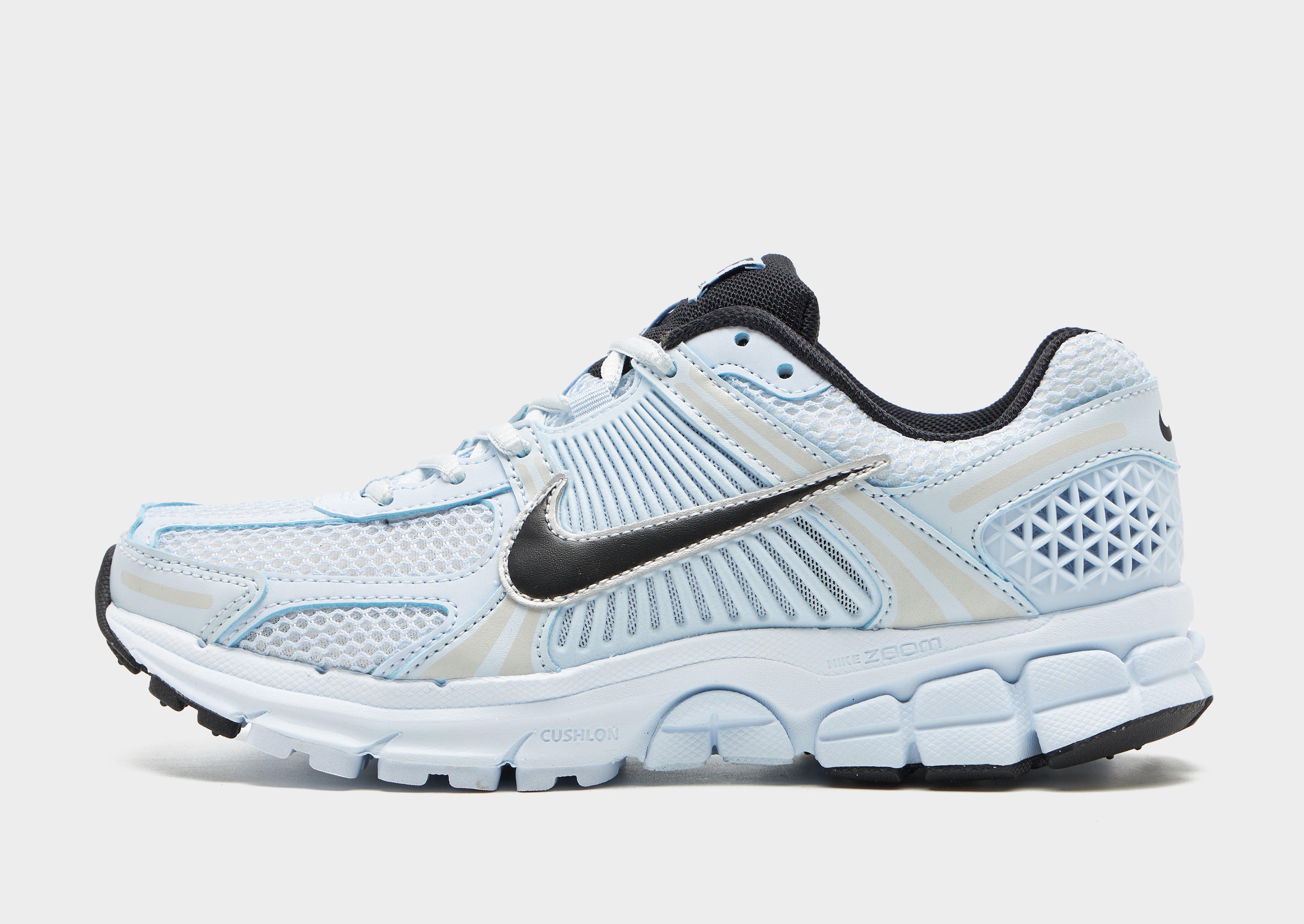 Retro running hits all-new heights with these women's Zoom Vomero 5 shoes from Nike. Landing in a Blue colourway with Black details, this modern take on early '00s sneakers have a breathable mesh upper with TecTuff and utilitarian overlays for a durable and structured fit. Equipped with extra padding at the collar and tongue for comfort, they're sat above Zoom Air cushioning in the foam midsole for a super responsive, lightweight ride. Finished off with a solid rubber outsole and signature Swoosh logos. Style Code: FJ2028-401