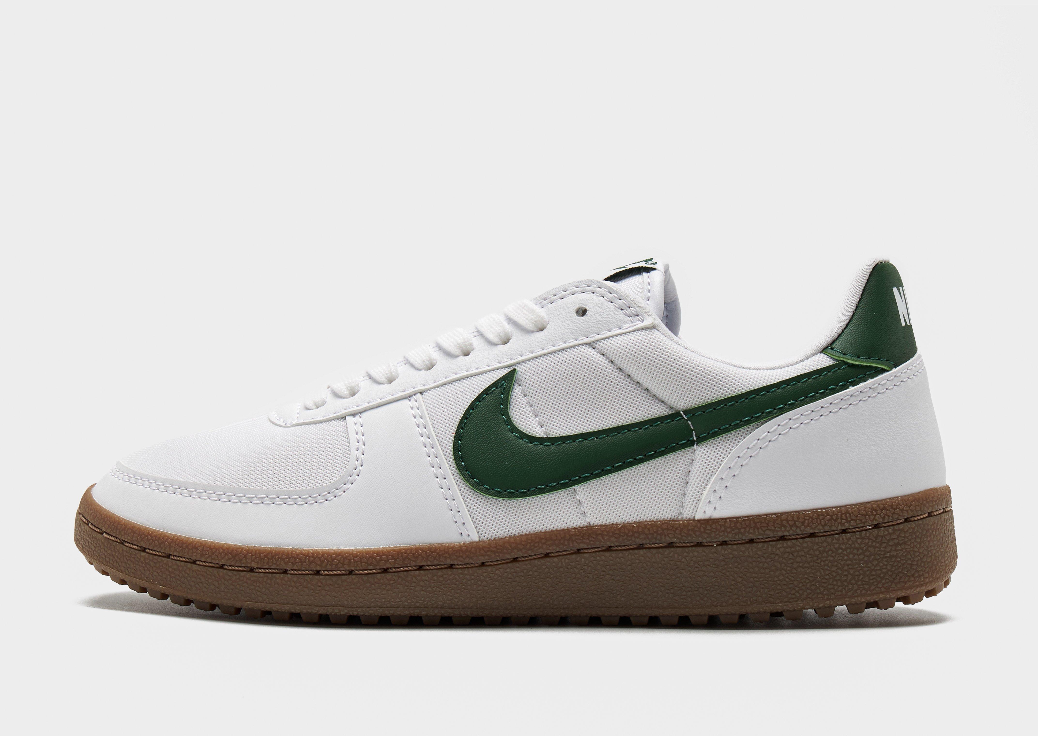 Add a vintage, '80s look to your footwear rotation with this women's Field General '82 sneaker from Nike. With its roots in American gridiron, this shoe is made from a mix of smooth leather and tough textiles to give it that old-school look. In a White colourway with Green details, these sneakers rest atop a rubber waffle sole for a grippy tread. Finished with the iconic Swoosh stitched to the sidewalls. Style Code: FZ5593-103