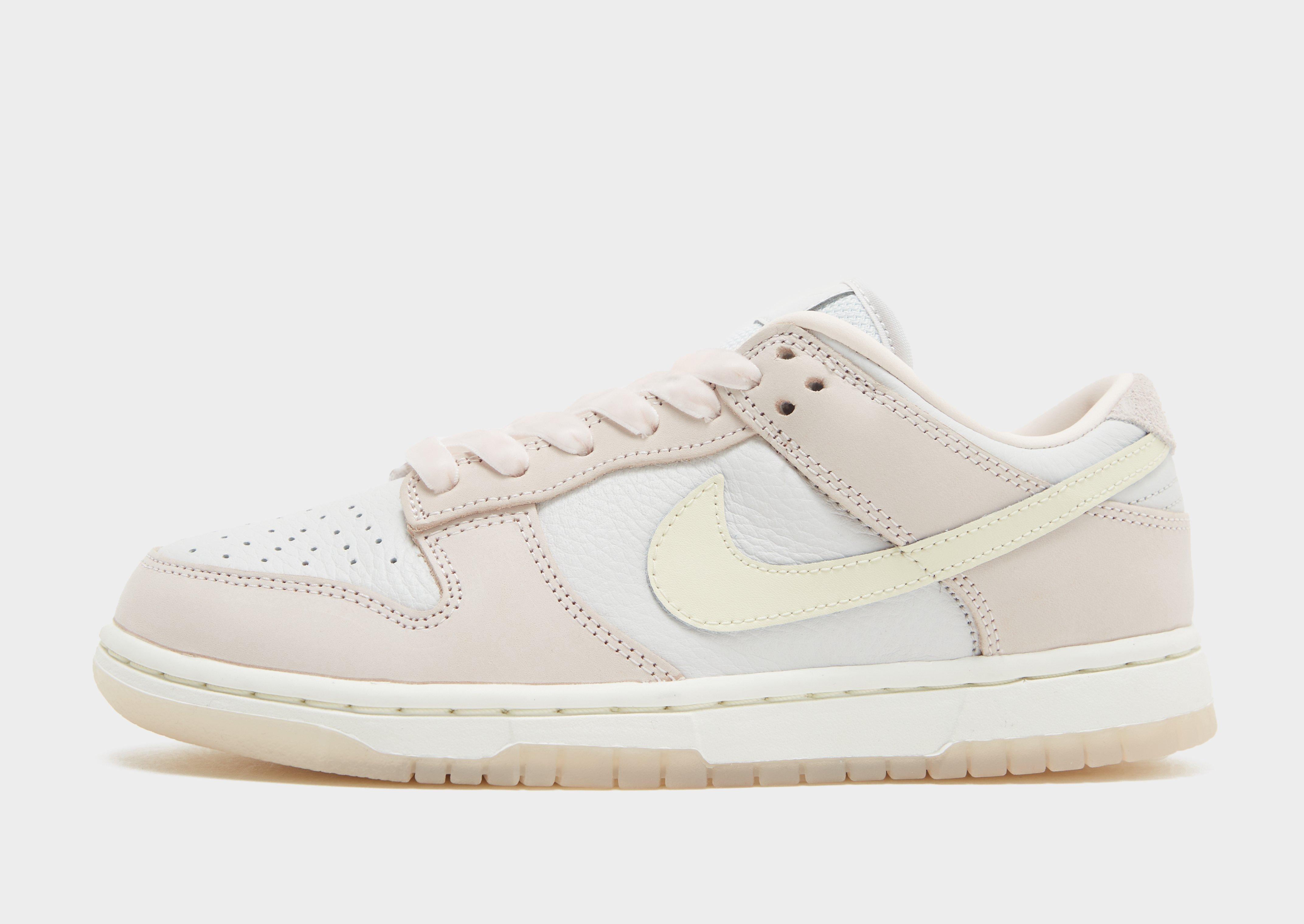 Rep an '80s court iconic with these women's Dunk Low Premium trainers from Nike. In a Light Soft Pink, Platinum Tint and Coconut Milk colourway, these kicks have a real and synthetic leather upper that is soft and gains vintage character with wear. The padded, low-cut collar and lace fastening keep things secure, while the foam midsole offers responsive cushioning with every step. Underfoot, the rubber outsole comes with a classic hoops pivot circle to give you durability and traction on the court or the streets. Finishing them up, they're signed off with Nike branding on the tongue and heel and the signature Swoosh on the sidewalls. __