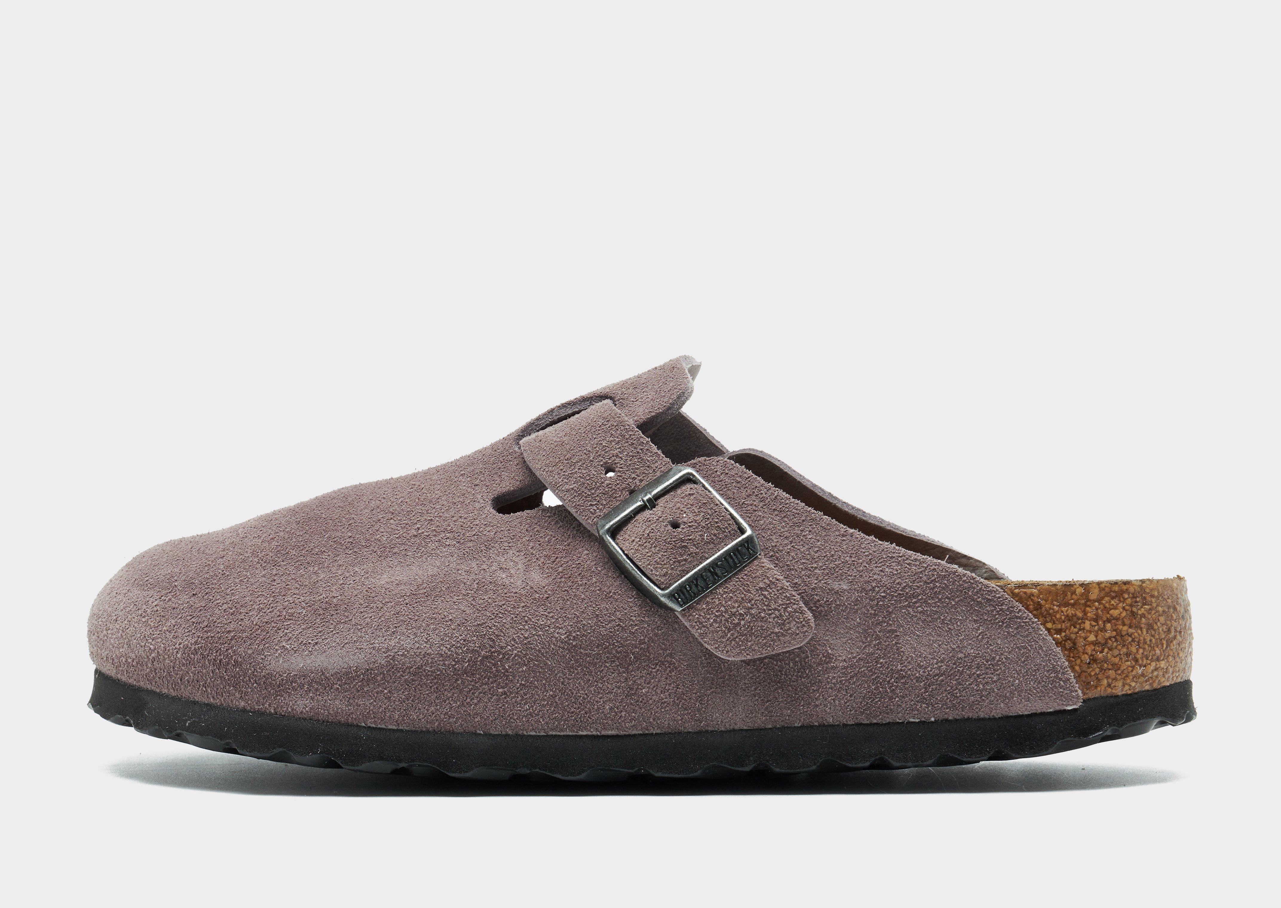 Step into a laidback style with these women's Boston Soft Footbed clogs from Birkenstock. In a Purple colourway, these sandals have a smooth, suede leather upper for lasting wear. With a slip-on design, they have an adjustable strap with a buckle to secure the fit, and sit on a contoured soft footbed with extra cushioning and a suede lining for supreme comfort. With a lightweight rubber outsole for traction, they're finished up with signature Birkenstock branding on the buckle. Style Code: 1028753