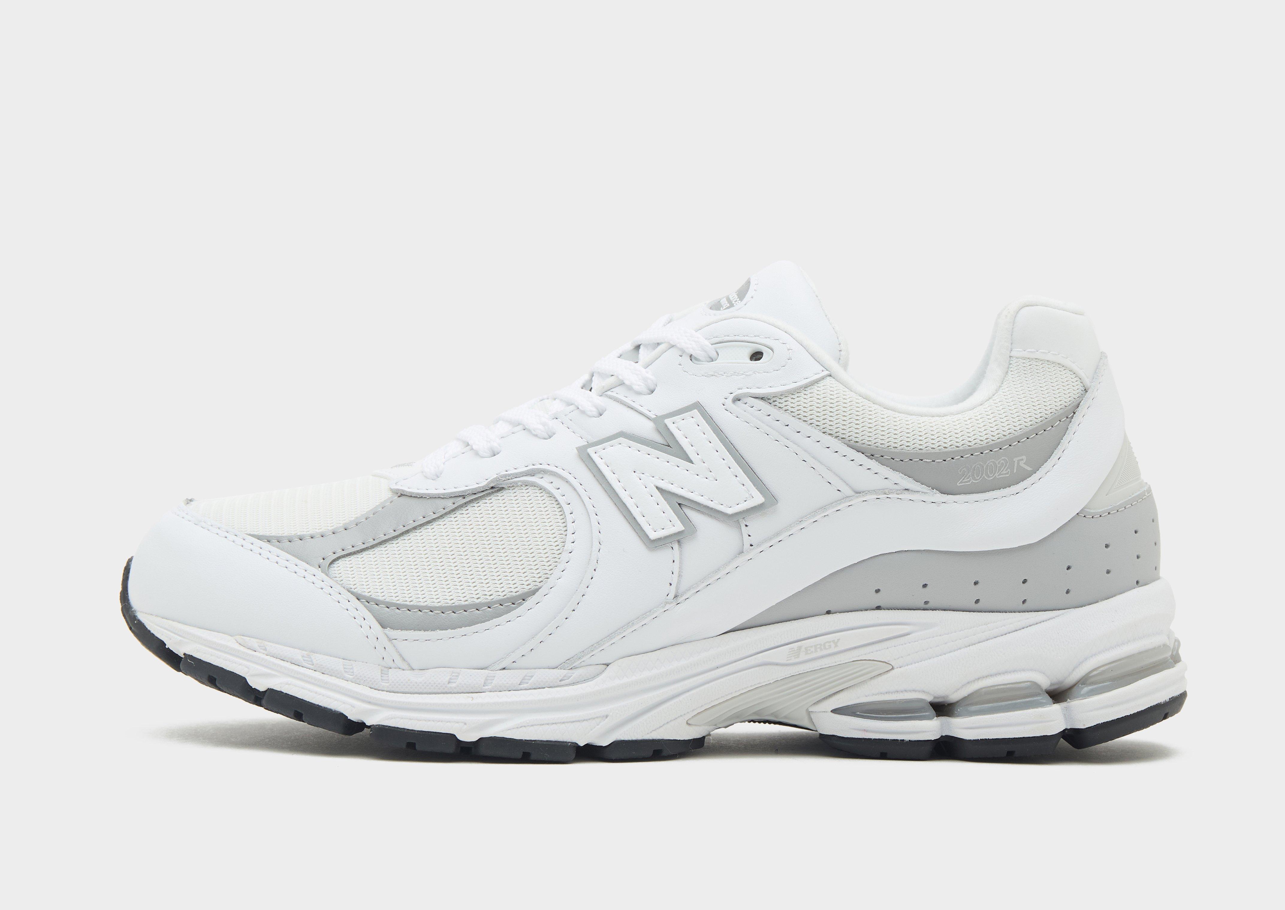 When the sun hits, lace up in these men's 2002R sneakers from New Balance. In a White and Grey colourway, these JD-exclusive trainers have a mix of breathable mesh and real and synthetic leather to the retro-inspired upper. They feature plush padding on the ankle collar and tongue, while the ABZORB midsole and ABZORB SBS heel cushioning make for super-soft and responsive impacts. Underneath, the N-ergy and Stability Web outsole tech add arch support and grip. Finished up with the New Balance running badge on the tongue and the signature 'N' at the sidewalls.