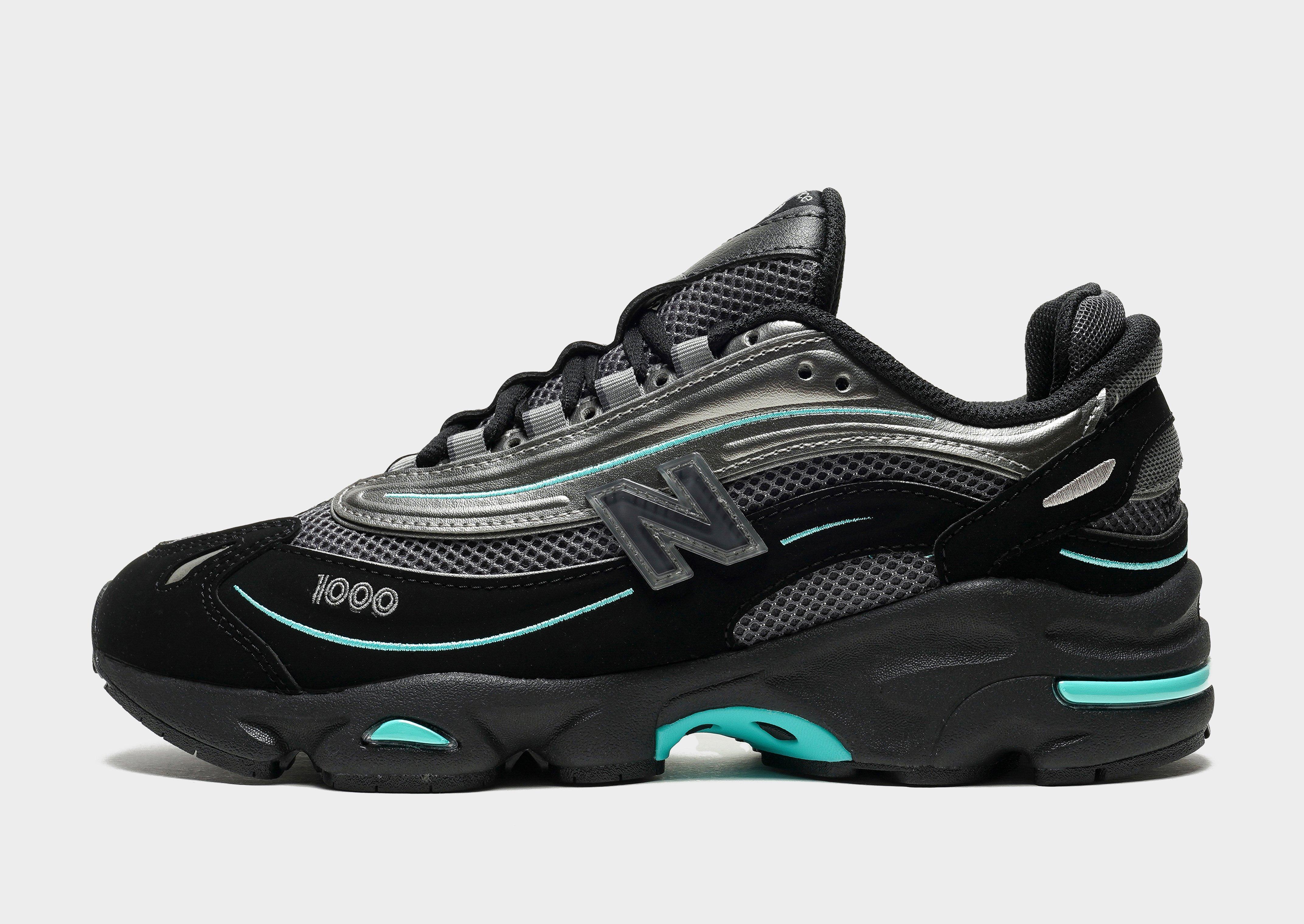 Rep a reimagined retro look with these men's 1000 sneakers from New Balance. Landing in a Black colourway with Teal details, these JD-exclusive sneakers have a mesh base and an inverted synthetic overlay design with mesh underlays to keep them breathable. Underfoot, sculpted midsole details and ABZORB technology in the heel and forefoot delivers premium cushioning, while Stability Web outsole tech provides arch support and extra grip as you step out on the streets. Finishing up, they're complete with embroidered details, reflective accents and the iconic 'N' logo on the sidewalls. Style Code: M1000JR