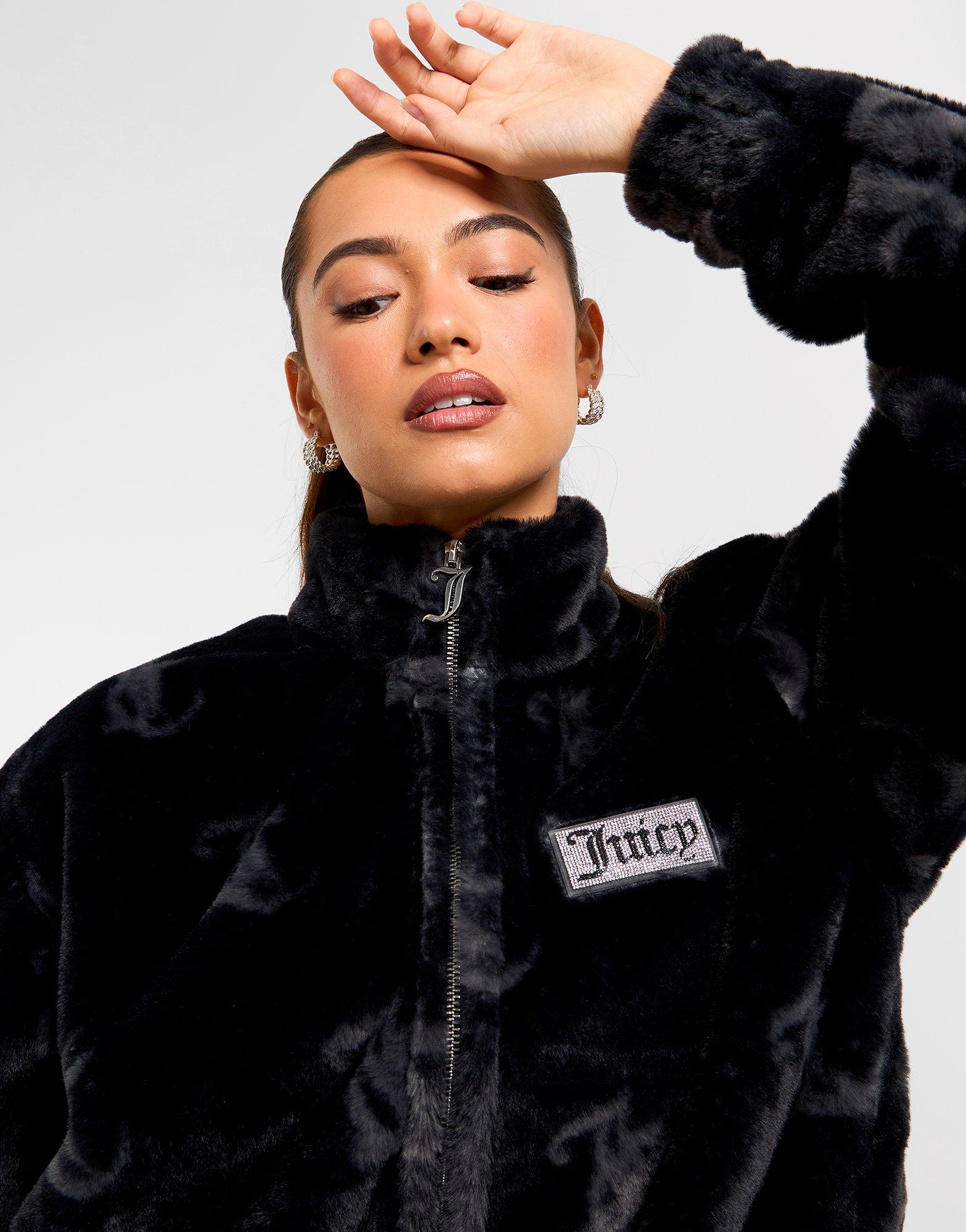 Add a staple to your wardrobe with this women's Faux Fur Jacket from Juicy Couture. Keep it premium and rep a retro vibe with Juicy Couture, an icon since the ‘90s known for its signature velour and unmissable diamante branding.