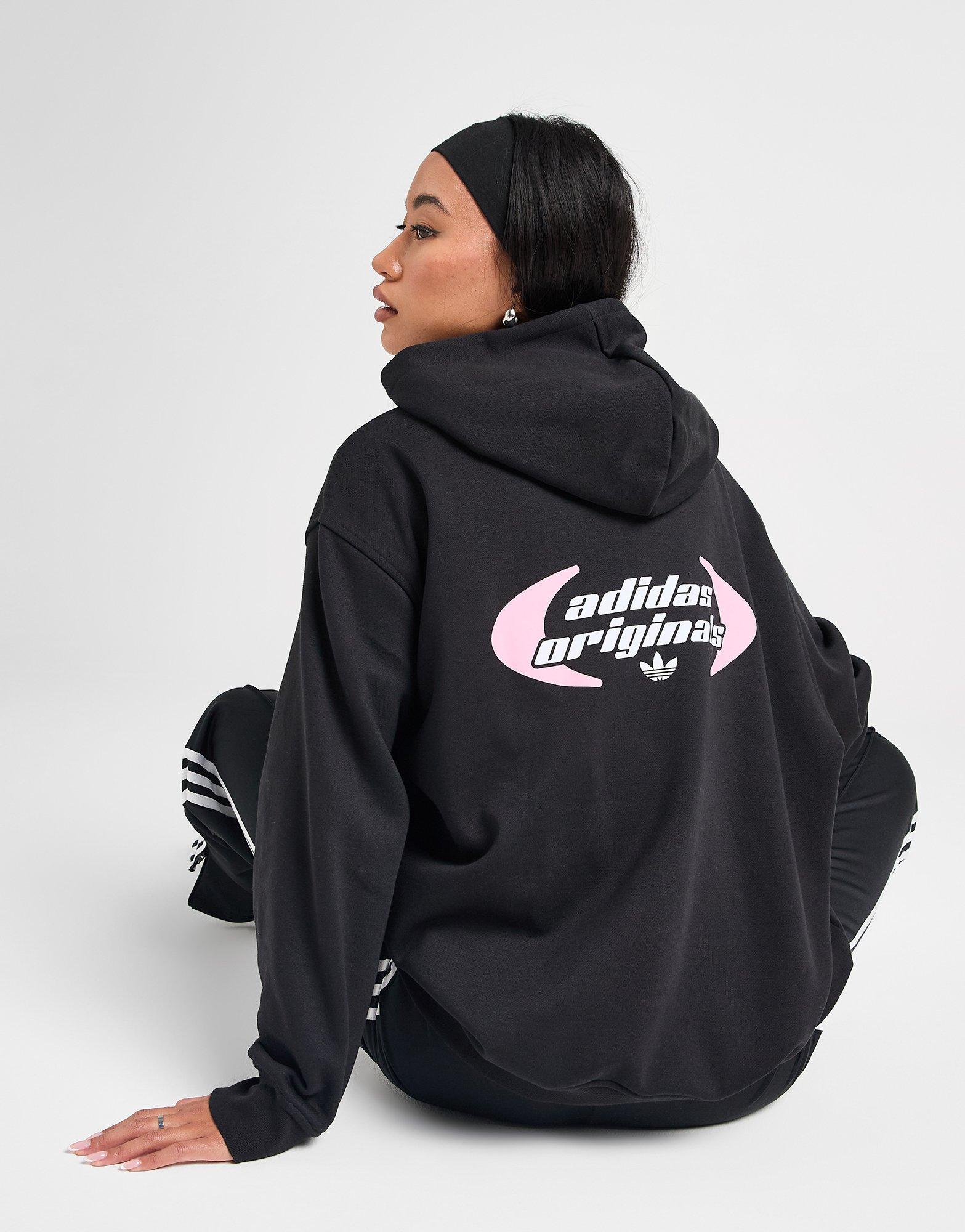 Exclusive to JD. Rep some track-inspired style with this women's Motorsport Overhead Hoodie from adidas Originals. In a Black colourway, this oversized hoodie is cut from a soft cotton-blended fabric for lasting comfort. It features long sleeves and a hood to amp up the coverage, ribbed trims to hold the shape, and a kangaroo pocket to stash away your essentials. Finished up with adidas Originals graphic branding to the chest and back. Machine washable. | Our model is 5'7" and wears a size S. | KA9817