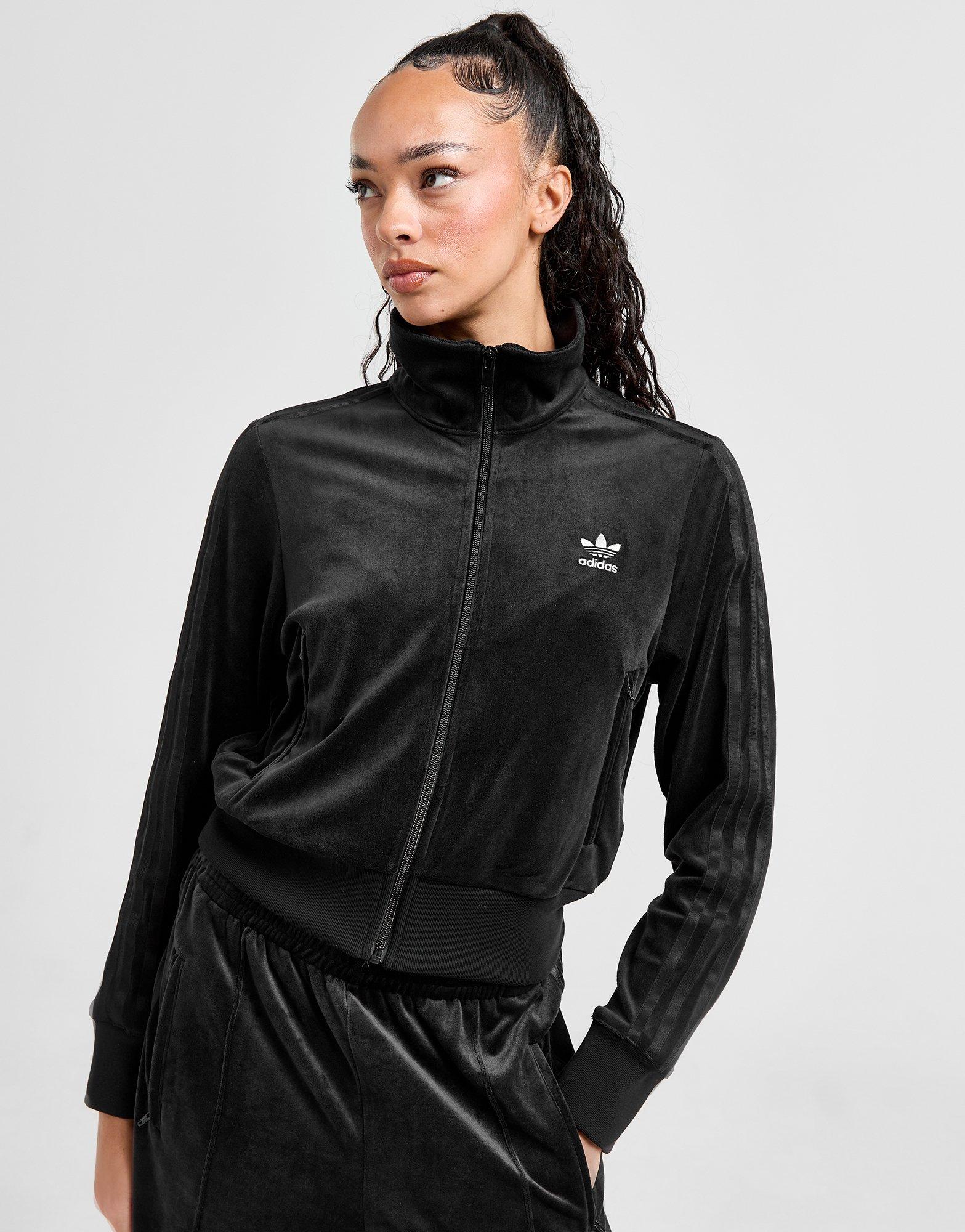 Make a statement in heritage style with this women's Velour Firebird Track Top from adidas Originals. Exclusive to JD, this relaxed-fit top is made with a super-soft, plush recycled velour fabric for lasting comfort. In a Black colourway, it features a full-length zipper and a stand-up collar for a custom look, and stretchy ribbed trims to secure the fit. It has zipped front pockets for storage, and is finished with signature adidas Originals branding throughout. Machine washable. | JD5488