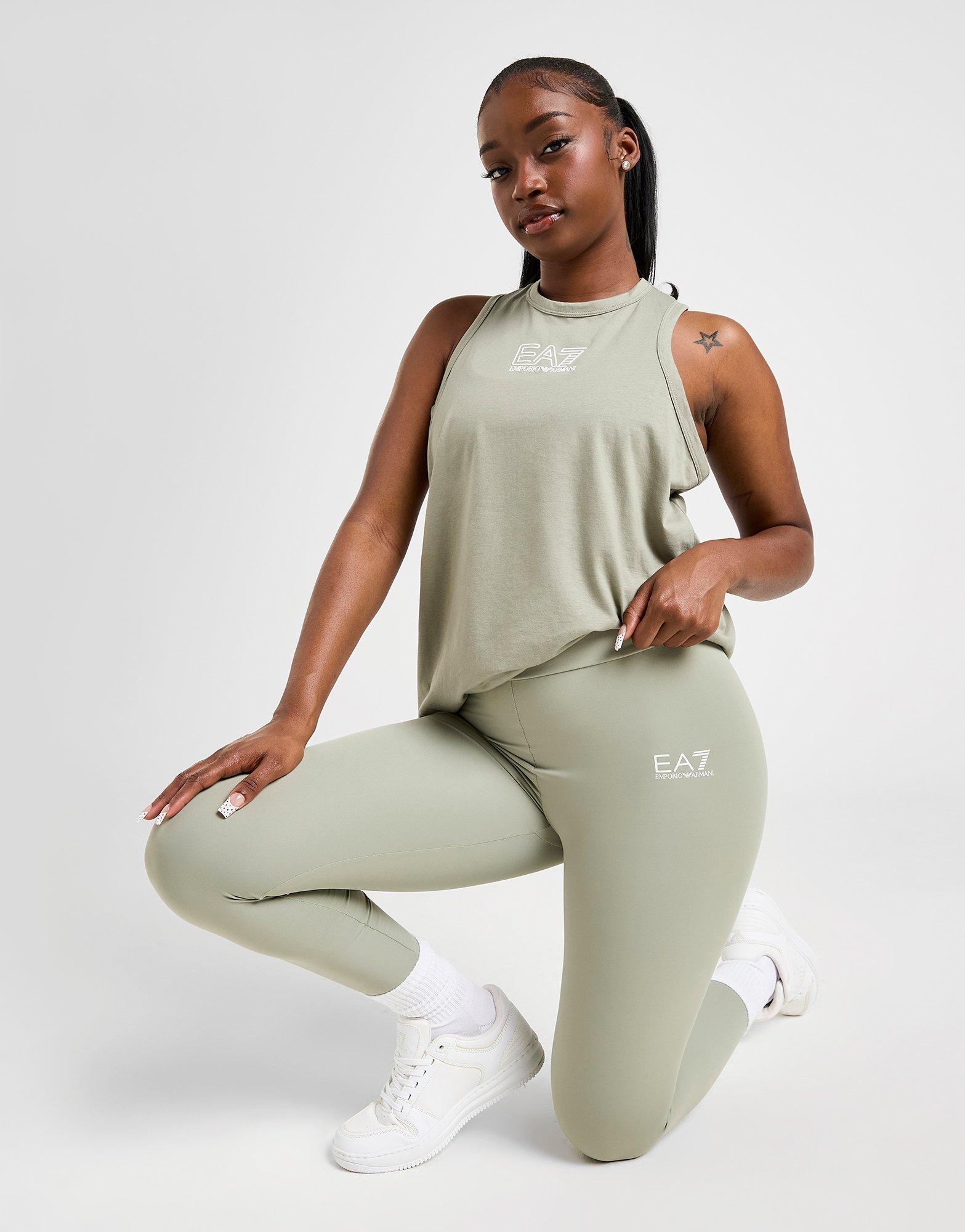 From gym sessions to chill days, refresh your rotation with these women's High Waist Poly Leggings from EA7 Emporio Armani. In a Green colourway, these tight-fitting leggings are made from smooth stretch-woven VIGOR7 fabric for cool comfort. They feature a high-rise elasticated waistband for a secure fit, and are signed off with signature EA7 Emporio Armani branding. Machine washable. | Our model wears a size S.