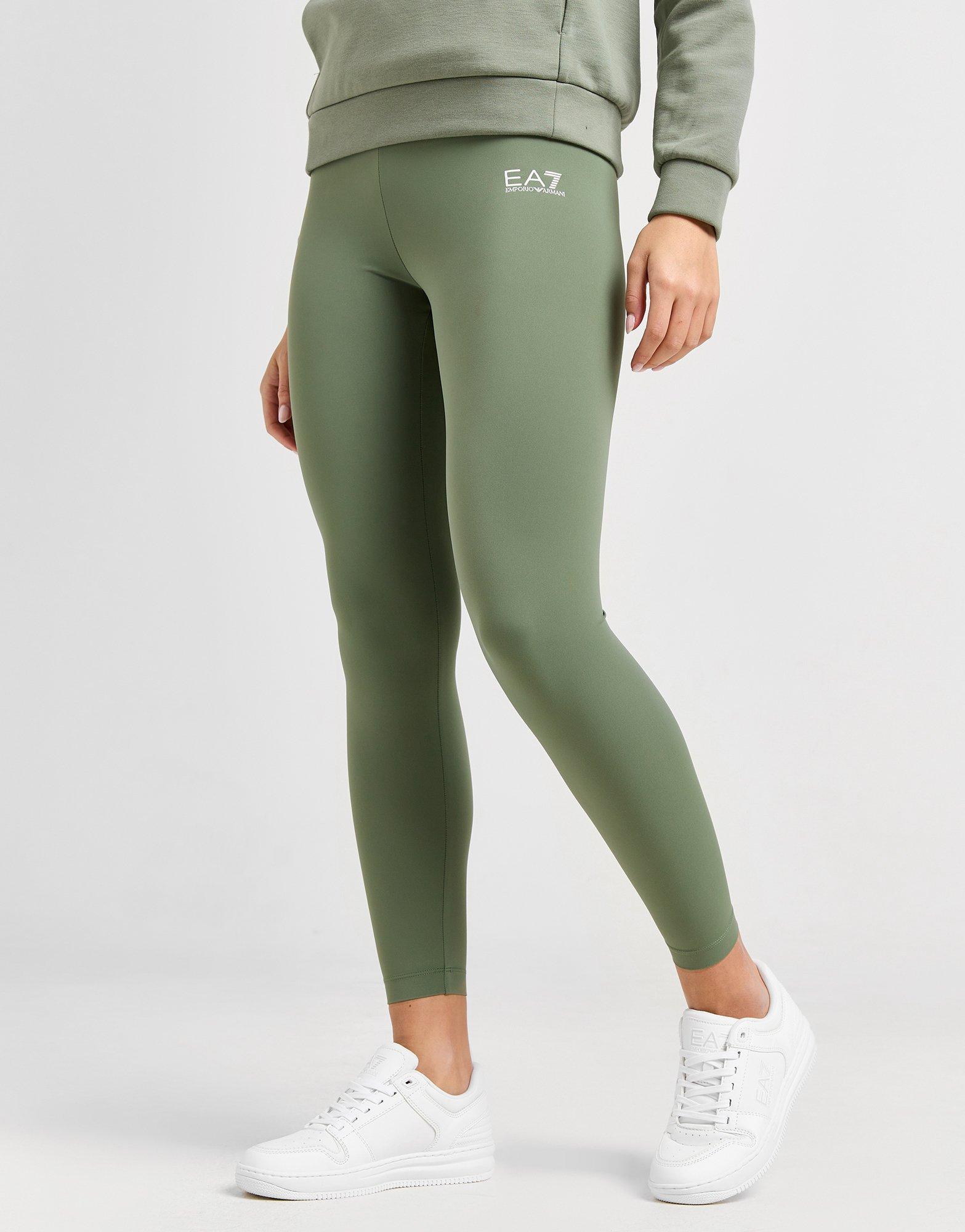 Work on your goals with these women's High Waist Poly Leggings from EA7 Emporio Armani. In a Green colourway, these slim fit tights are cut from light, stretchy fabric with built-in VIGOR7 tech to wick away sweat. They feature an elasticated, high-rise waistband for a relaxed fit and are finished up with classic EA7 branding. Machine washable. | Our model is 5'9" and wears a size small.