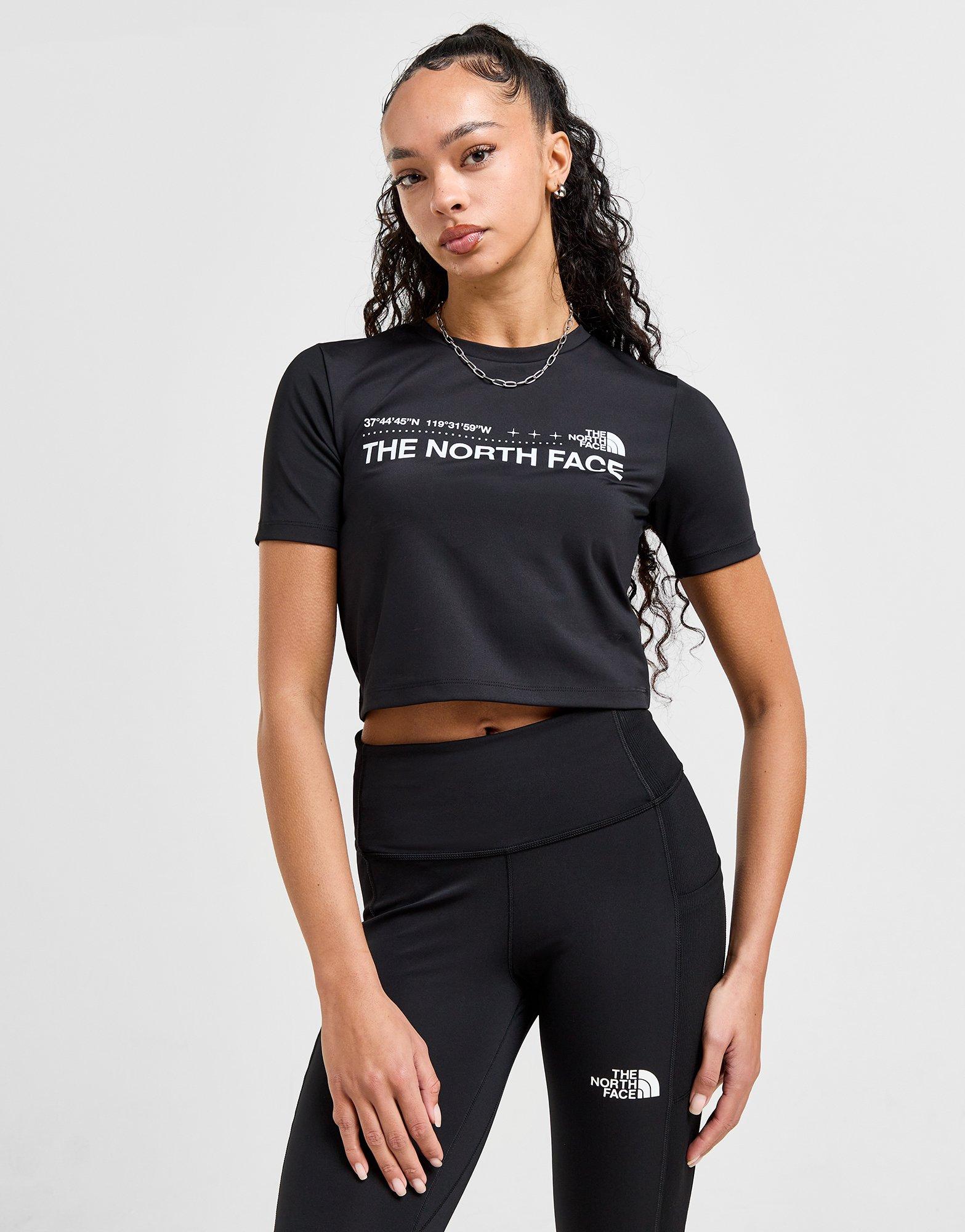 Exclusive to JD. Make a statement in this women's Tech Graphic Slim T-Shirt from The North Face. In a Black colourway, this slim-fit tee is made with smooth, lightweight polyester fabric for lasting comfort. It features a classic crew neckline and short sleeves, and a sleek cropped hem. Finished with a bold The North Face branded graphic at the chest, with a signature logo to the back. Machine washable. | Our model is 5'8.5" and wears a size S.