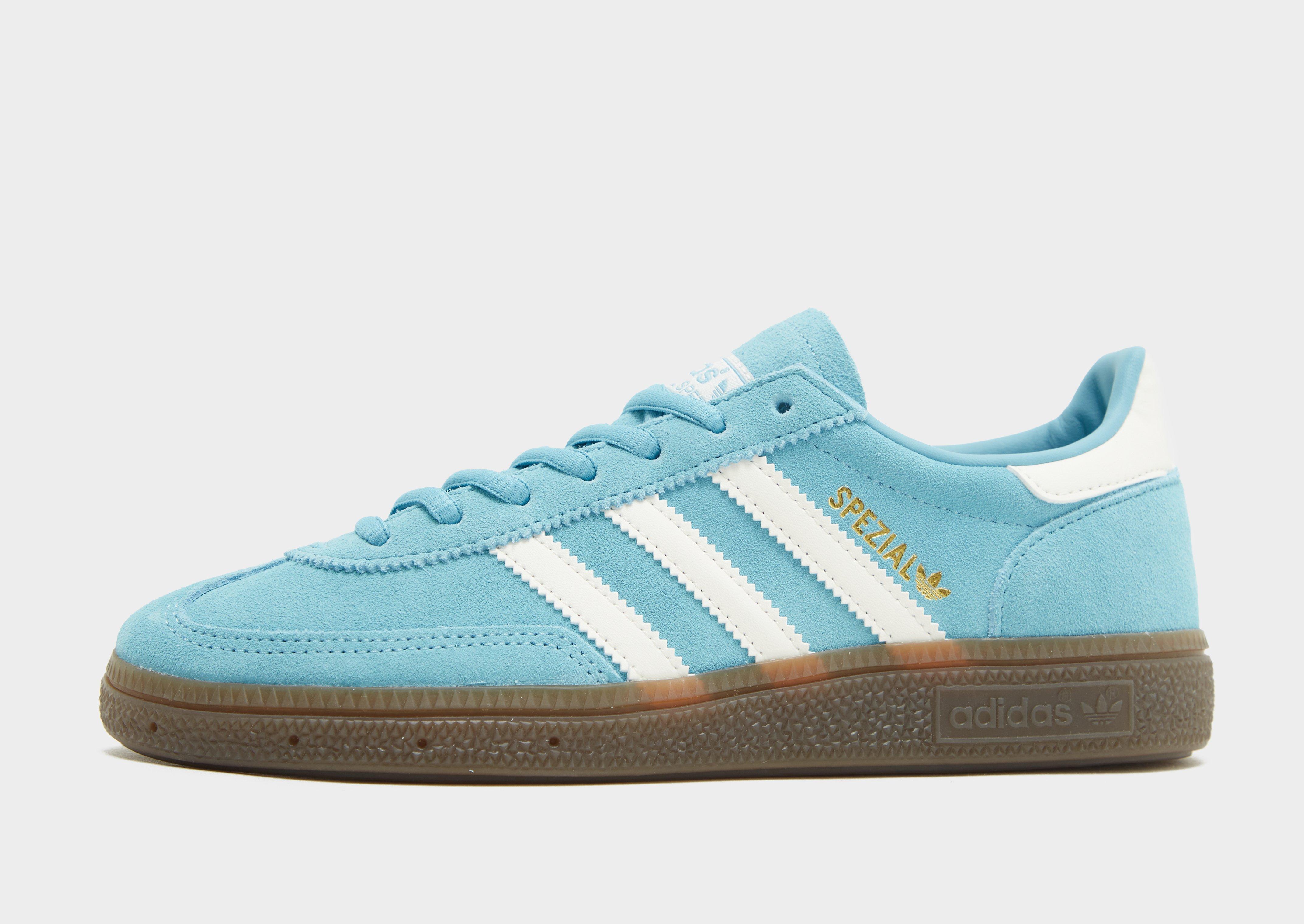 Exclusive to JD. Rep a '70s inspired classic with these women's Handball Spezial trainers from adidas Originals. Landing in a Preloved Blue colourway with Off-White and Gold Metallic accents, they come with a suede upper with leather details for a premium feel. With a low-profile silhouette, these kicks have a classic lace fastening to lock 'em in, with a grippy rubber gum sole underfoot that delivers traction as you're steppin' out on the streets. To finish up, they're signed off with a Trefoil logo on the tongue, the signature serrated 3-Stipes and a Spezial logo on the sidewalls. | JQ2731