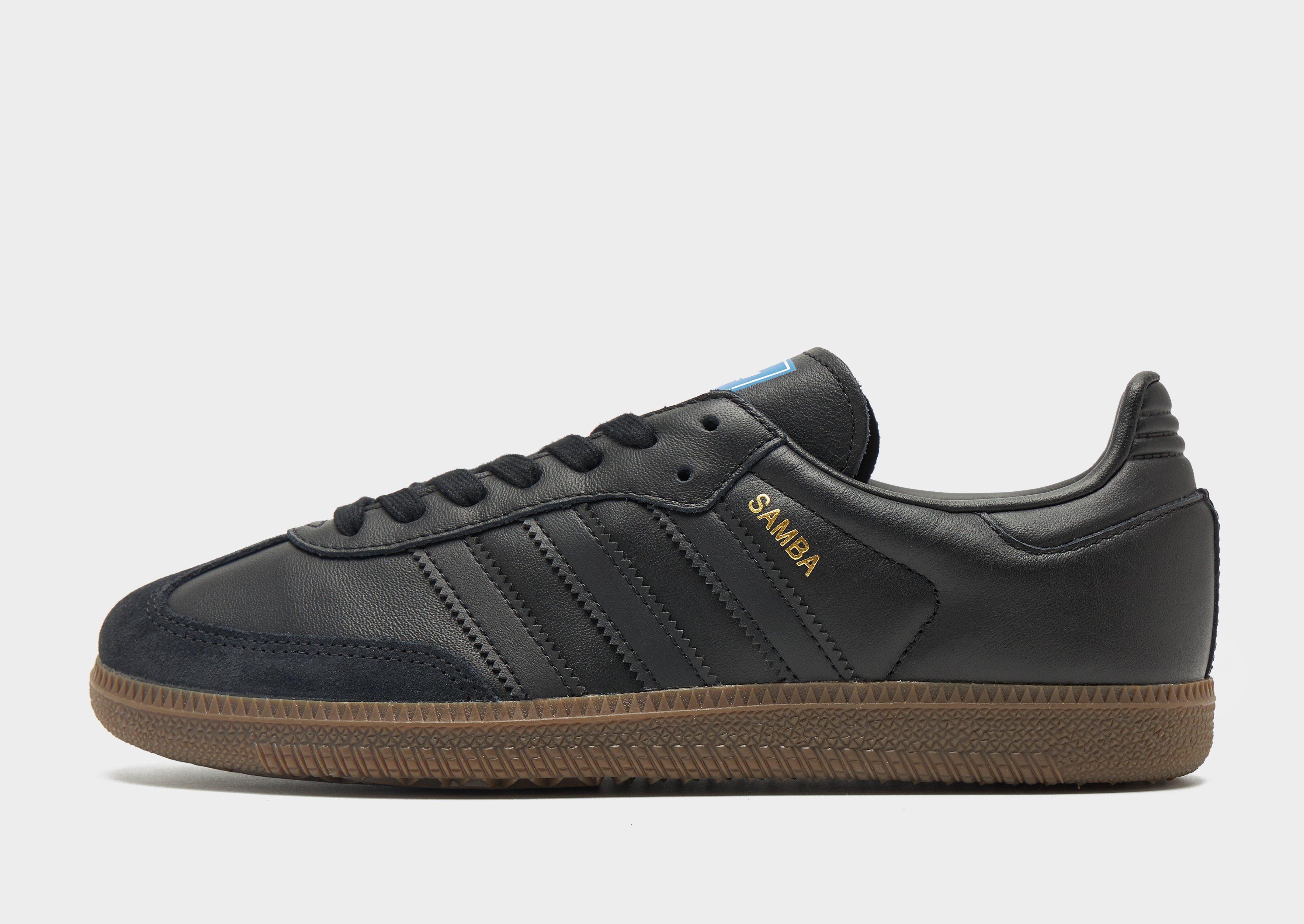 Add a streetwear icon to your footwear rotation with these women's Samba OG shoes from adidas Originals. Taking cues from the original football-inspired Samba design first introduced in the 1950s, these iconic terrace sneakers let you imagine you're walking in those vintage footsteps. Built with a Black leather upper, they feature a suede toe guard and are sat upon a responsive gum midsole. With tonal laces and signature adi 3-stripes to the side in tonal, they're signed off with 'Samba' wording to the side, and iconic Trefoil branding to the tongue. Style Code: IE3438W