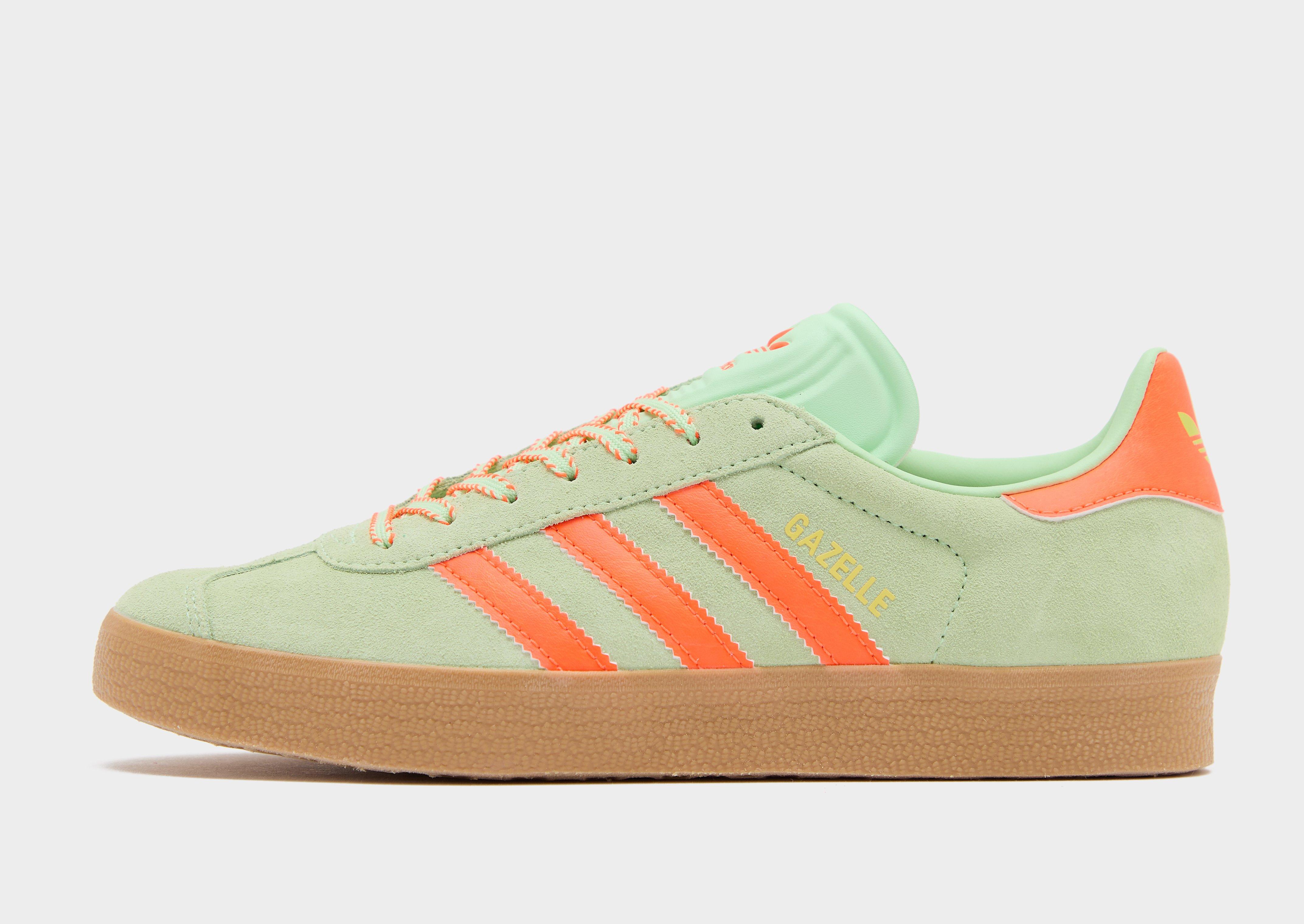 Refresh your crep game with these women's Gazelle trainers from adidas Originals. In a Semi Green Spark colourway, these low-profile kicks have a smooth yet durable suede upper for a premium feel. They feature a textile lining and a cushioned insole for a snug, secure feel, with a grippy rubber outsole for grippy traction. These trainers are finished off with 3-Stripes and classic Trefoil branding in Solar Orange. | JH7212