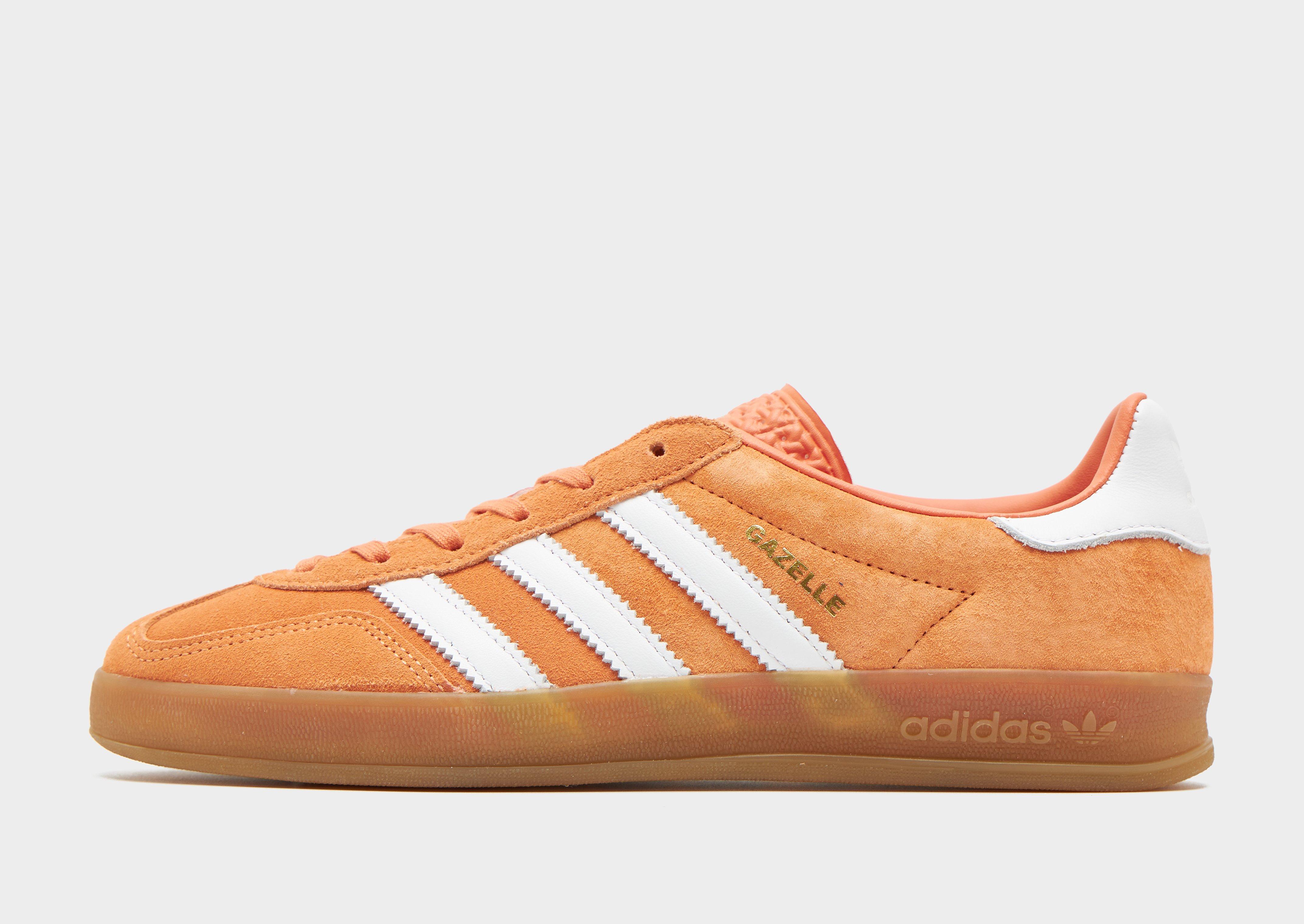 Add a retro vibe to your sneaker rotation with these women's Gazelle shoes from adidas Originals. In an Orange colourway with White details, these JD-exclusive, low-cut shoes have a premium suede upper and padded tongue for a classic look and feel. They're sat above a smooth midsole for lightweight cushioning and a rubber outsole for essential grip. Finished off with signature Adi 3-Stripes, a retro Trefoil label on the tongue and Gold foil Gazelle branding.