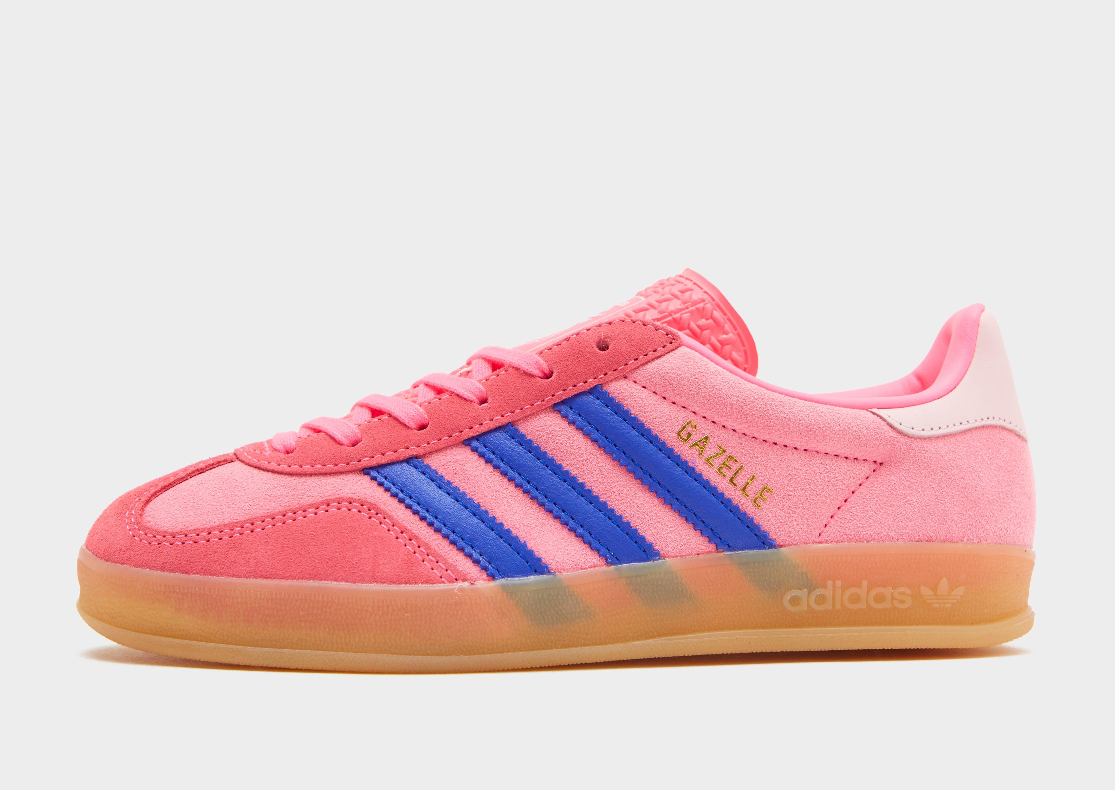 Add a pop of colour to your rotation with these women's Gazelle Indoor trainers from adidas Originals. In a Lucid Pink colourway, these archive-inspired treads have a soft suede upper with a classic T-toe overlays for a classic look. They feature a tonal lace fastening with a low-cut collar to lock you in, and sit above a streamlined midsole with light cushioning underfoot. With a grippy gum rubber outsole for traction, they're finished with signature adidas Originals branding throughout. | JQ0194
