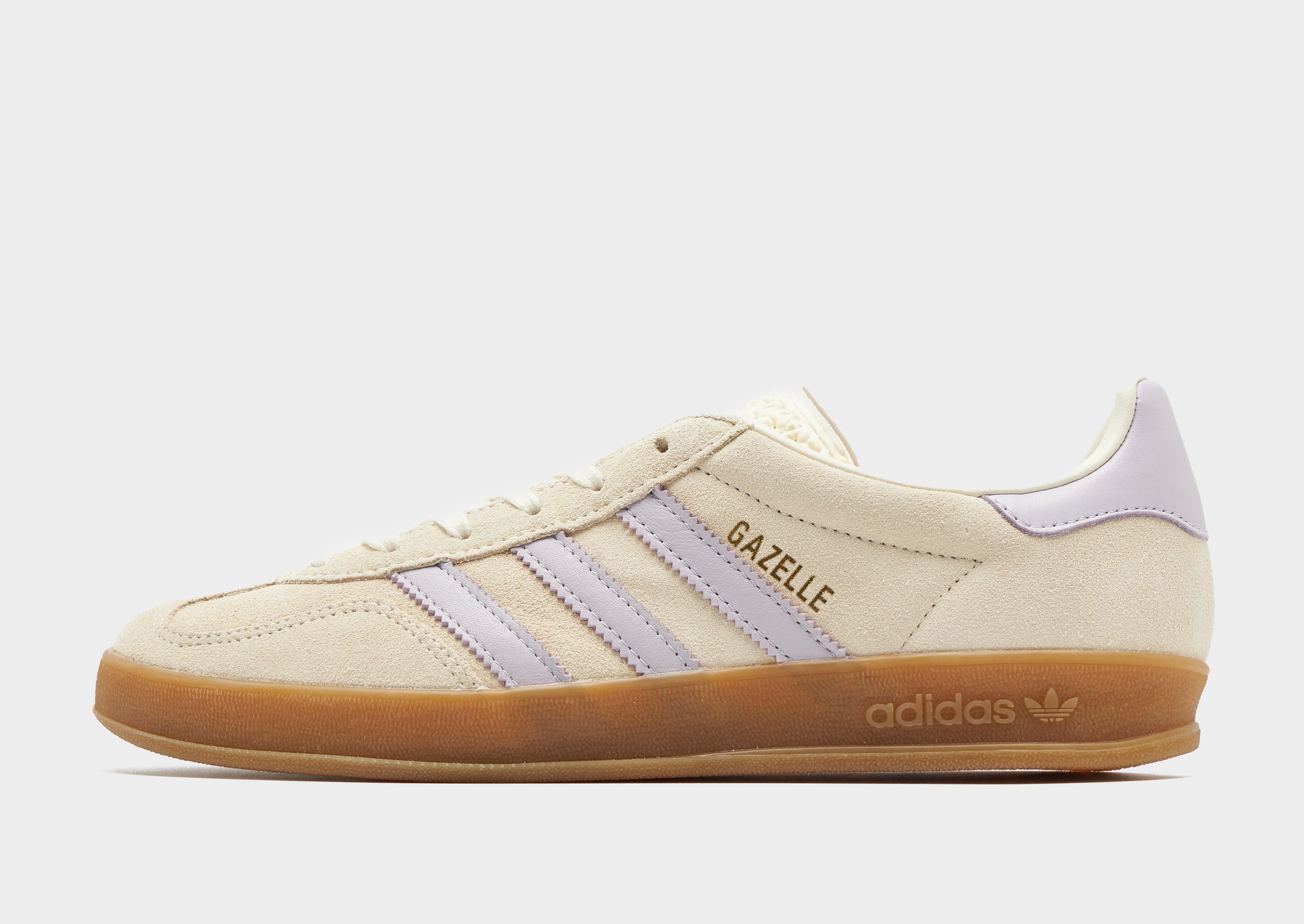 Add a retro vibe to your sneaker rotation with these women's Gazelle Indoor shoes from adidas Originals. In a Cream colourway with Purple details, these JD-exclusive, low-cut shoes have a premium suede upper and padded tongue for a classic look and feel. They're sat above a smooth midsole for lightweight cushioning and a rubber outsole for essential grip. Finished off with signature Adi 3-Stripes, a retro Trefoil label on the tongue and Gazelle branding. Style Code: JR3366