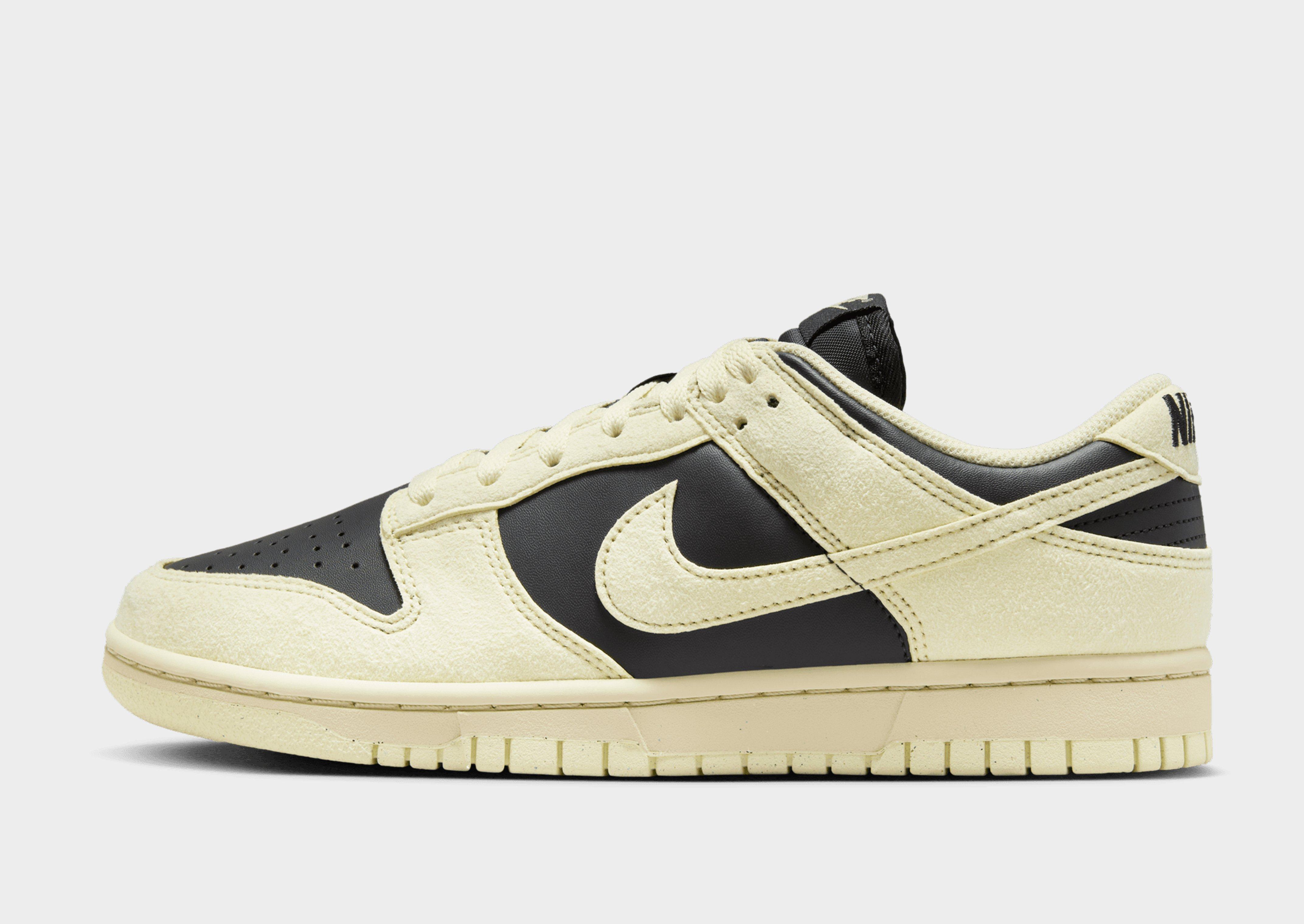 Inspired by b-ball style, these women's Dunk Low shoes from Nike are back from '85. These low-profile sneakers have a premium leather and synthetic upper keeping the OG design lines. They come in a Black colourway with Light Yellow details, and feature a tonal lace-up fastening for a locked in fit. With breathable perforations to the toe box, these shoes are sat on a soft foam midsole for lightweight cushioning and maximum comfort. Finished with a grippy rubber tread for traction on the courts, signature Nike branding and the iconic Swoosh logo to the sidewalls. Style Code: HJ7673-005