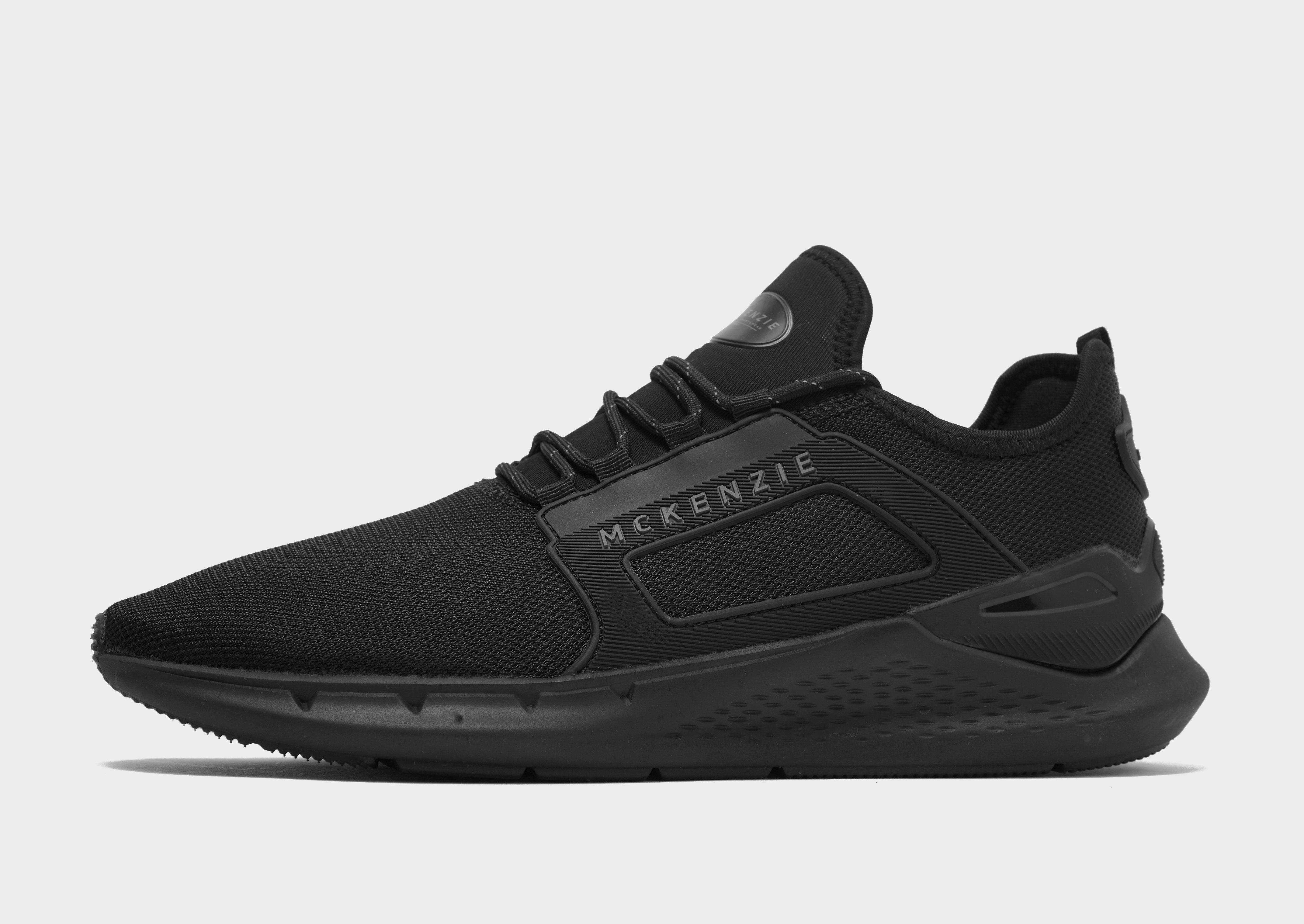 Lace up in a stealthy look with these men's Almer V2 trainers from McKenzie. Exclusive to JD, these sneakers have A breathable textile upper with synthetic overlays for added support. They come in a Black colourway, and feature a tonal lace up fastening with plush padding around the ankle collar for a locked-in feel. Sat on a lightweight midsole with soft, spongy cushioning, these trainers have a tough rubber outsole underfoot for grippy traction. Finished up with signature McKenzie branding throughout.