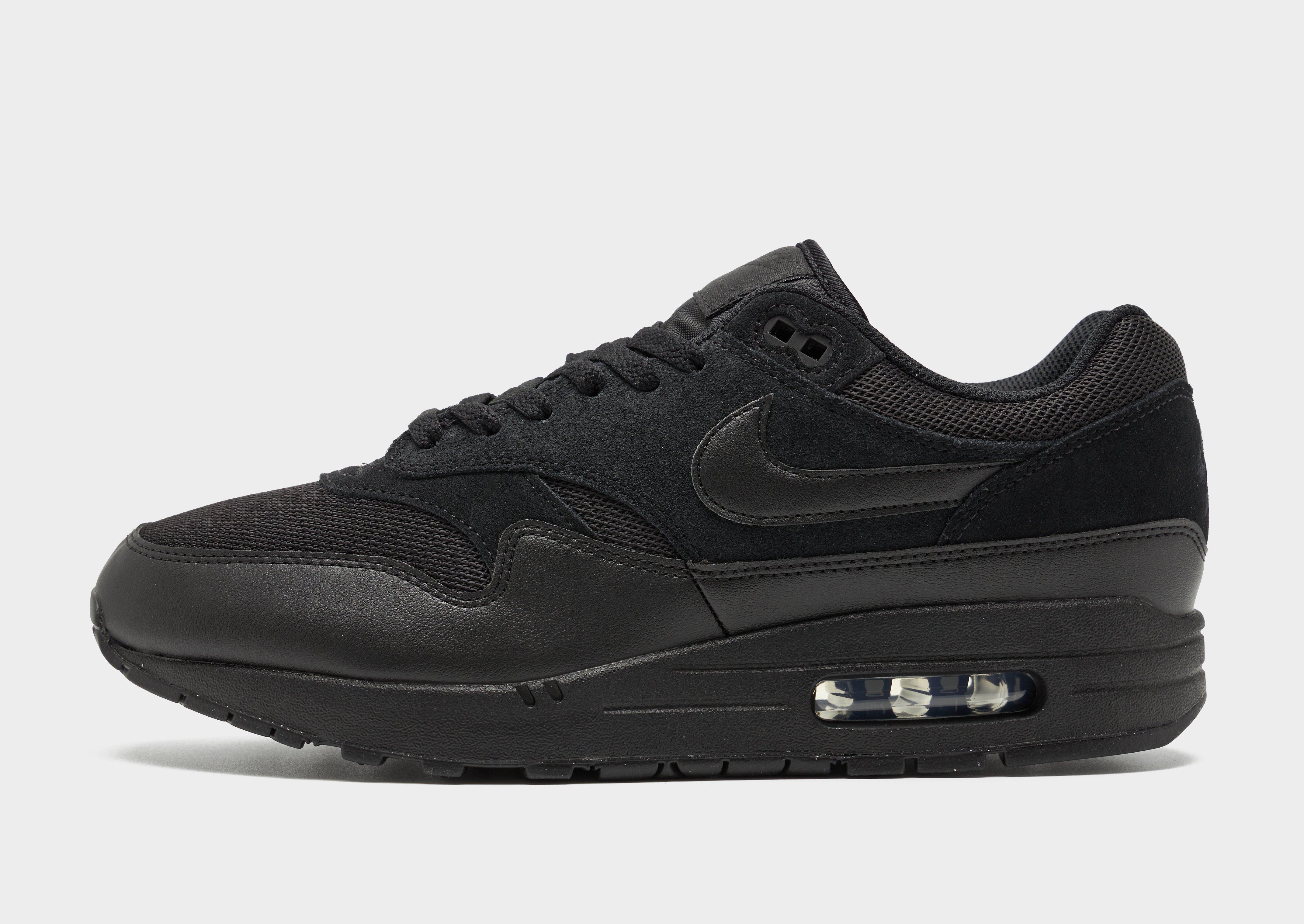 Carry on the '87 legacy with these men's Air Max 1 shoes from Nike. In a Black colourway with tonal details, these sneakers have a blend of textile and suede across the wavy panels on the upper. They feature a padded ankle collar and tongue for a comfy fit, while visible Max Air cushioning in the heel offers support and bounce in your step. With a rubber Waffle outsole and flex grooves for natural traction, they're finished off with signature Swooshes to the sidewalls.