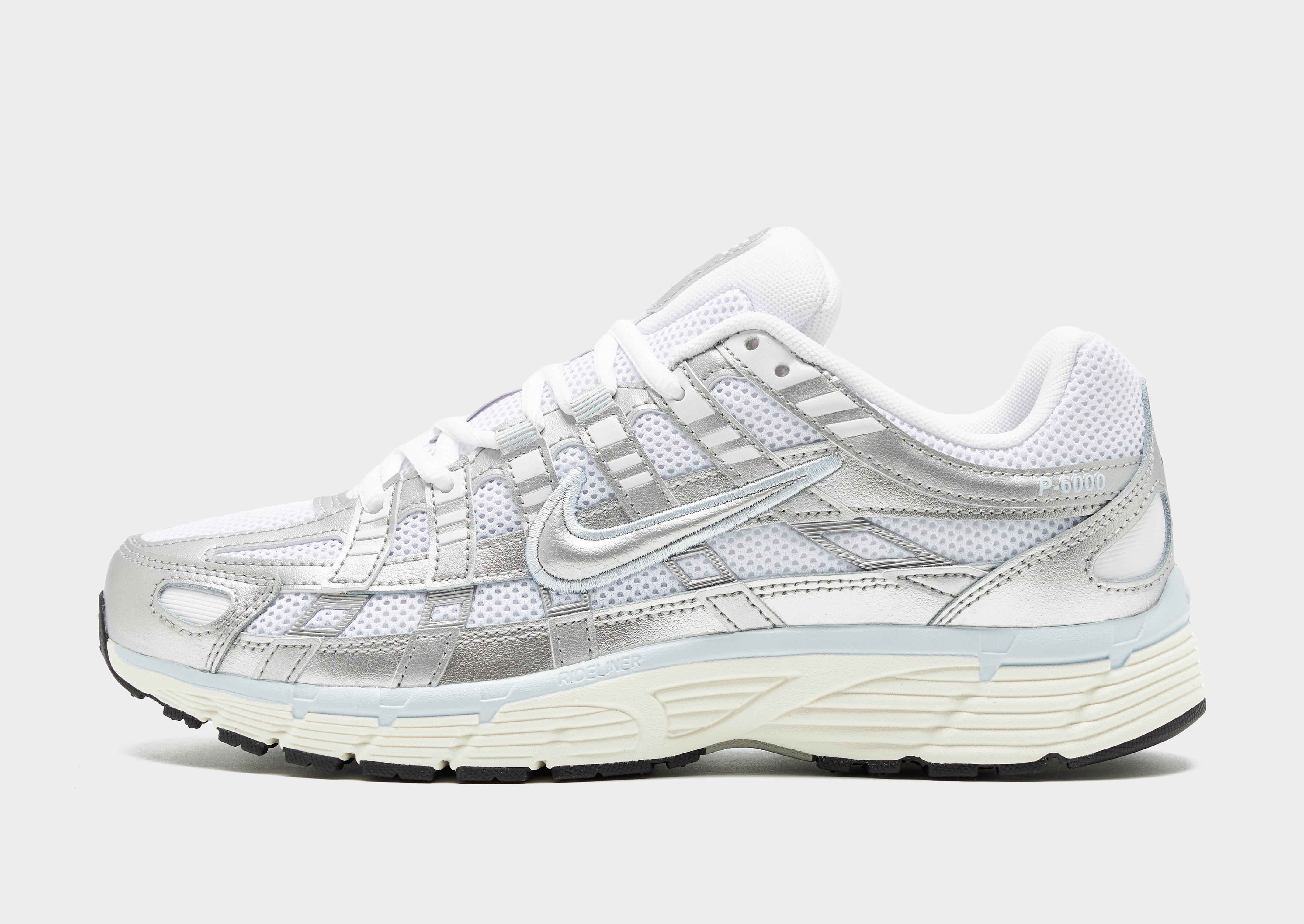Rep retro, Y2K running style with these women's P-6000 shoes from Nike. In a White colourway with Silver details, these 2000s inspired sneakers have a multilayered upper with airy mesh, leather and synthetic materials. They feature a tonal lace fastening with soft padding around the ankle collar for a locked-in fit, and sit atop a spongy cushioned insole for all-day comfort. They have a tough rubber outsole for grippy traction, and are finished with signature Swoosh branding throughout. Style Code: BV1021-106