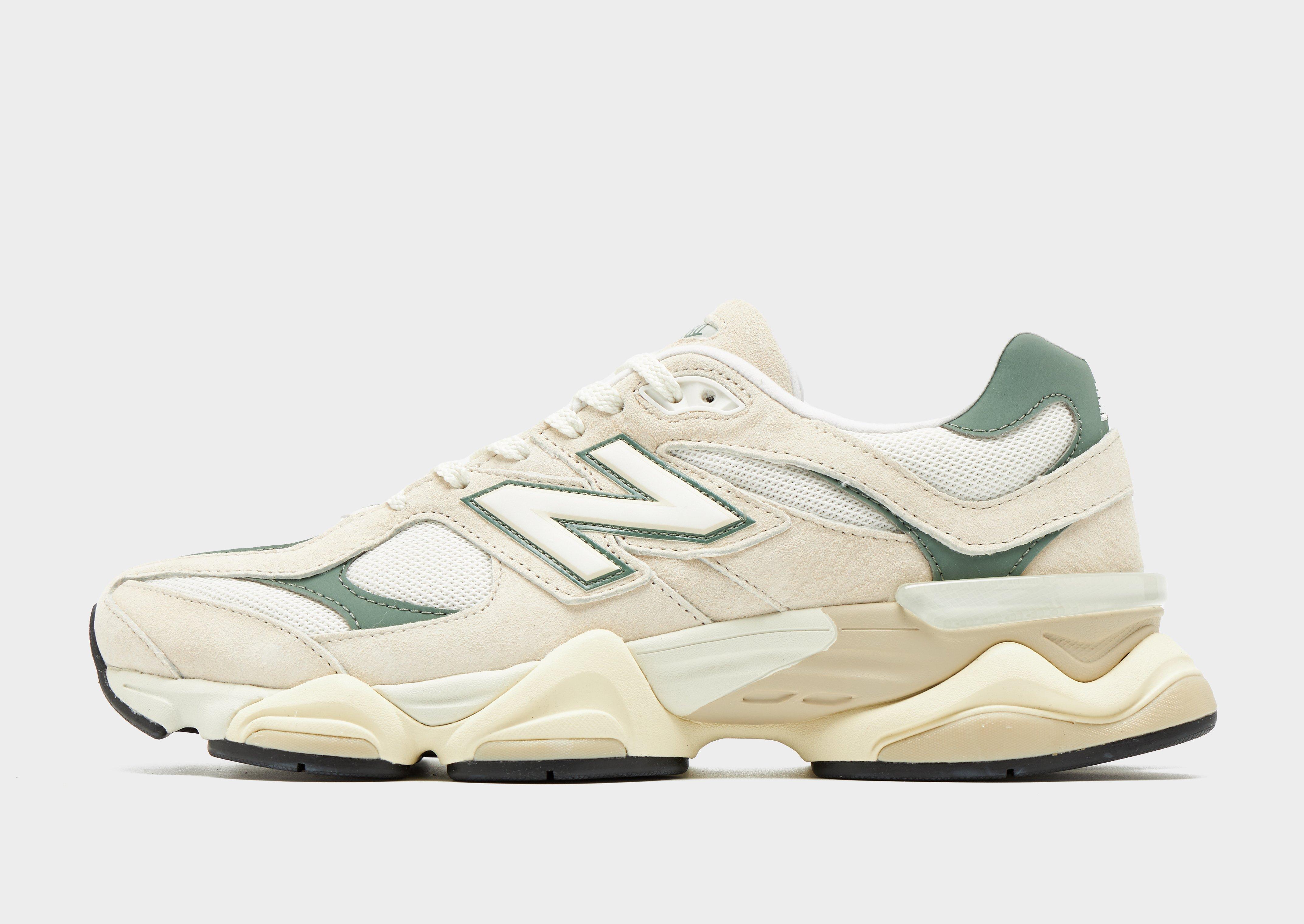Refresh your kick collection with these men's 9060 shoes from New Balance. In a Beige colourway with Green details, these low-profile sneakers have a light and breathable mesh upper with suede overlays for premium support. They feature a lace fastening with a padded ankle collar for a snug, supportive fit and a CR device to the heel for added stability. Underfoot is a dual-density midsole that's equipped with ABZORB and SBS cushioning for a responsive ride, and a diamond rubber outsole for essential traction. Signed off with New Balance branding to the tongue that's inspired by the original 991 lace jewel. Style Code: U9060EEI
